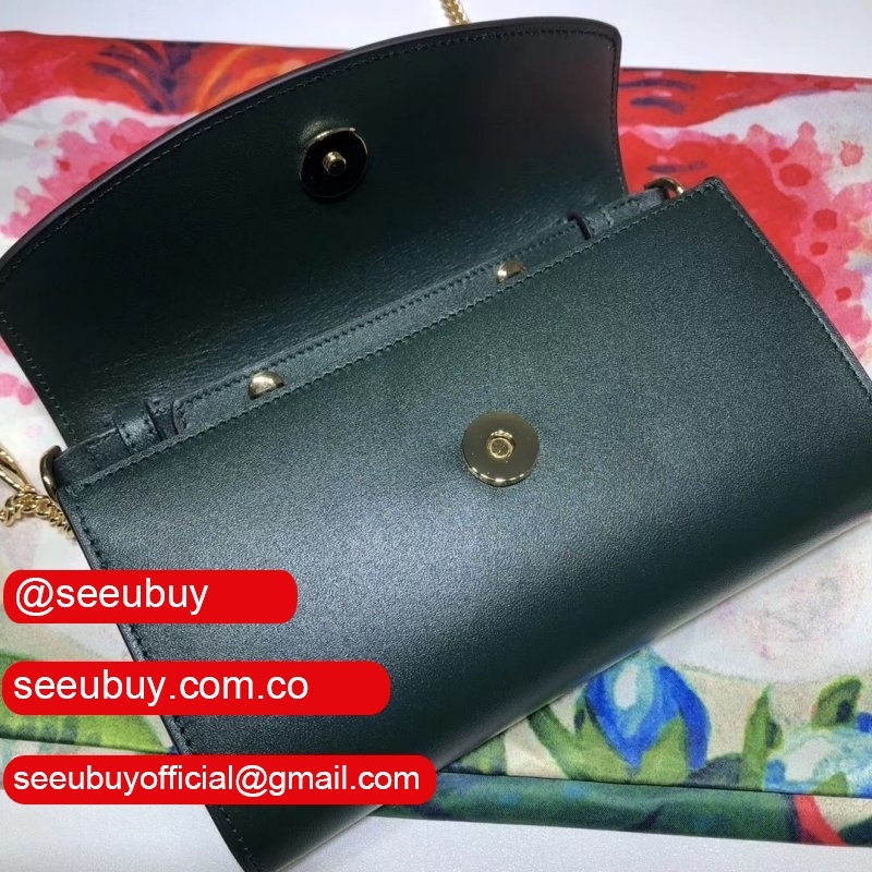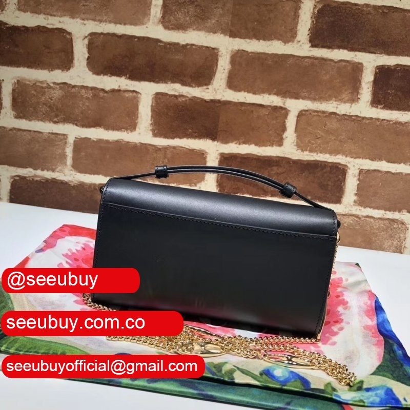 Detachable Marina chain shoulder stra secures with a button closure at the interior flap