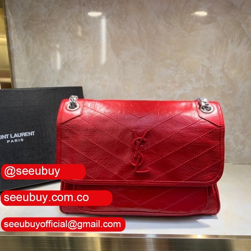 Best Ysl Replica Saint Laurent niki 19cm Shoulder Red and Black