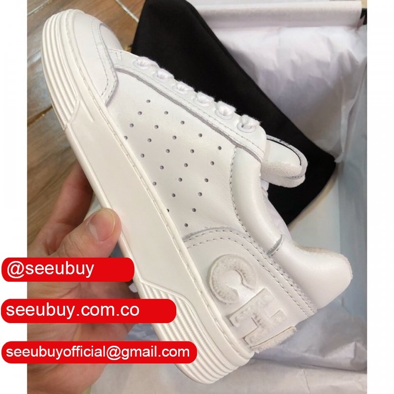 Wholesale High Quality Lingge leather slippers White/Black Shoes