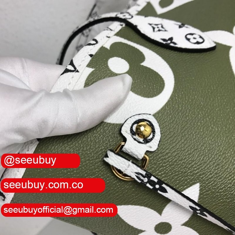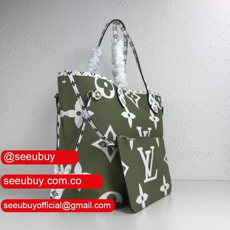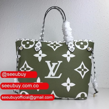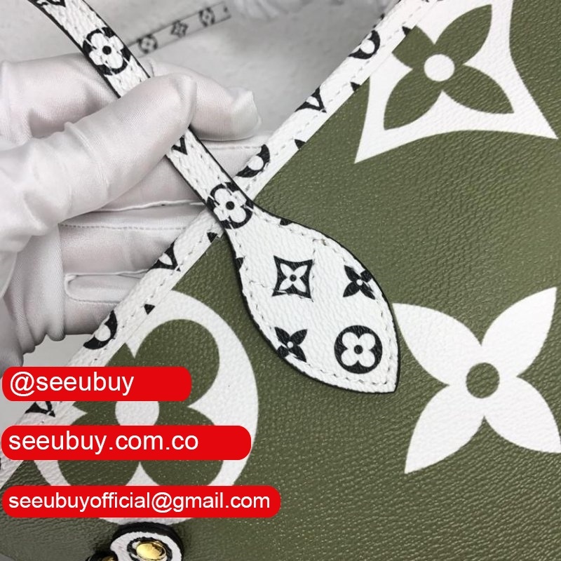 Green lv Limited Edition Giant Monogram Neverfull MM in Khaki