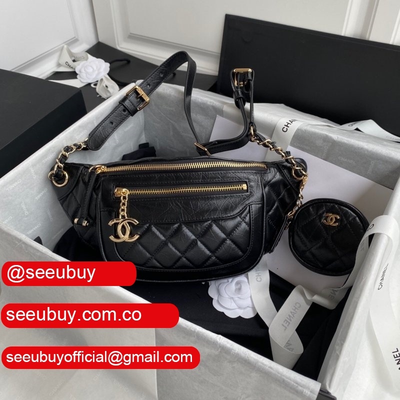 Buy Online CC AAA+ Calfskin Waist AS1077 Black Bag