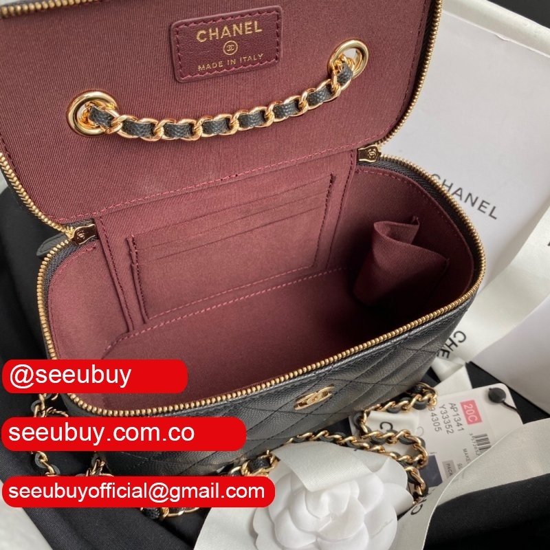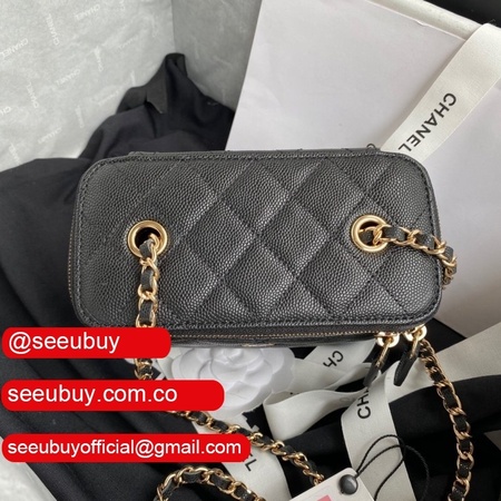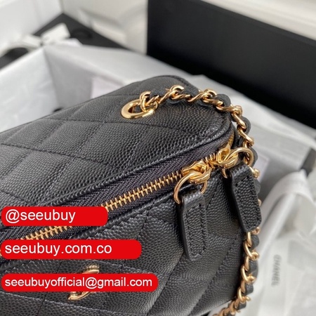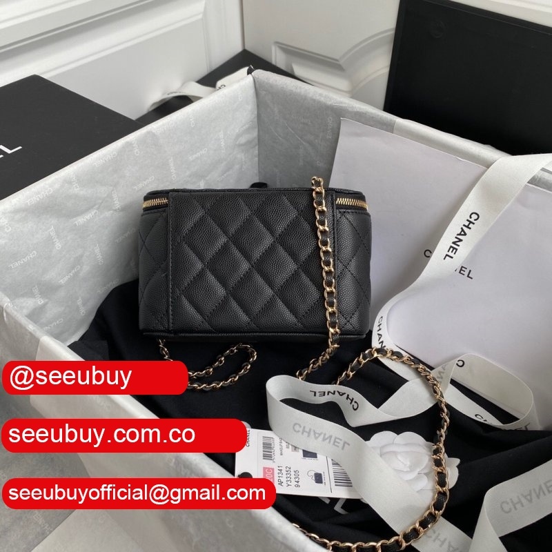 Cheap CC Vanity Case Grained Calfskin 93343 Black
