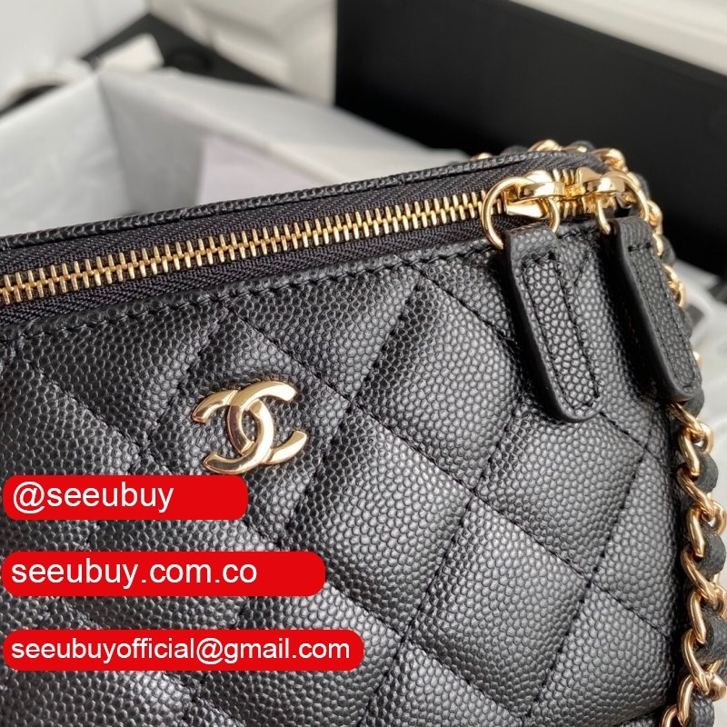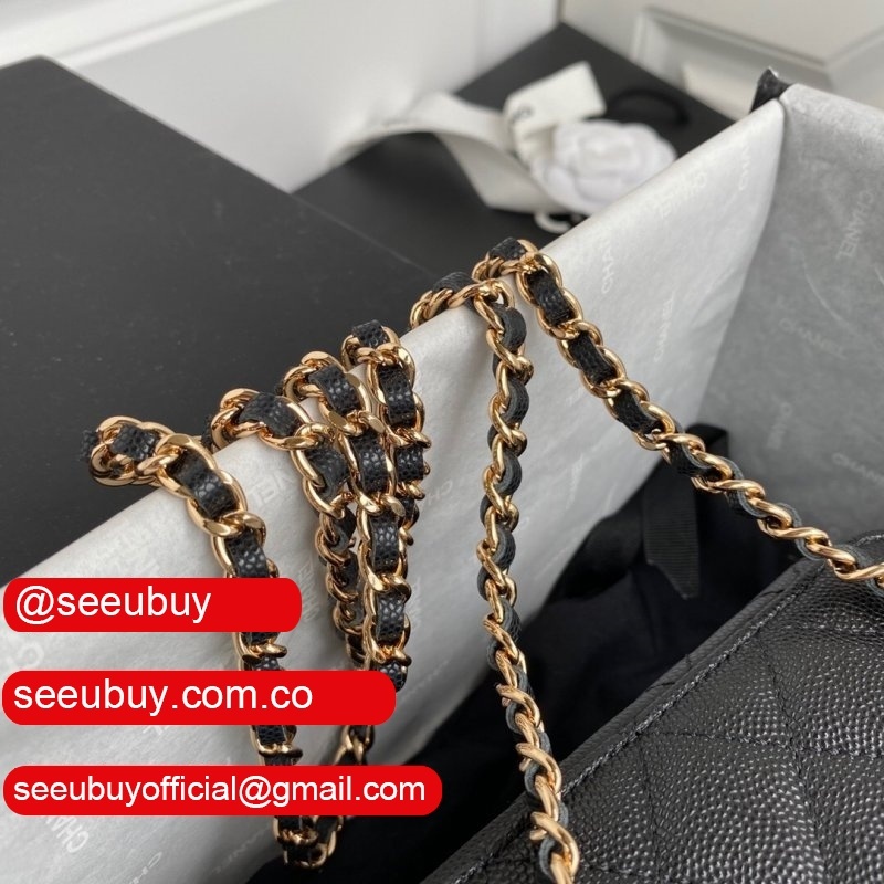 CC Wholesale Gold-Tone Clutches AP1341 Grained Calfskin Black Bags