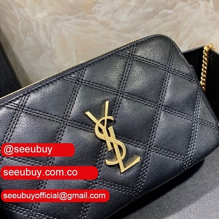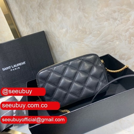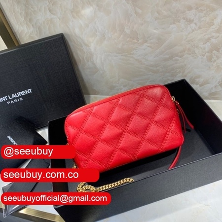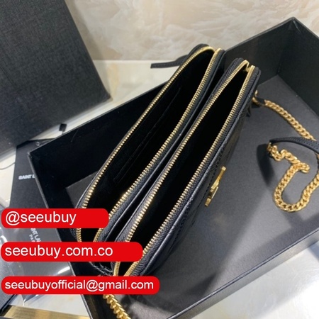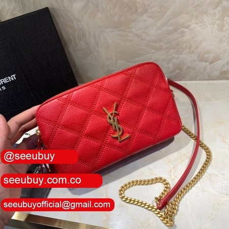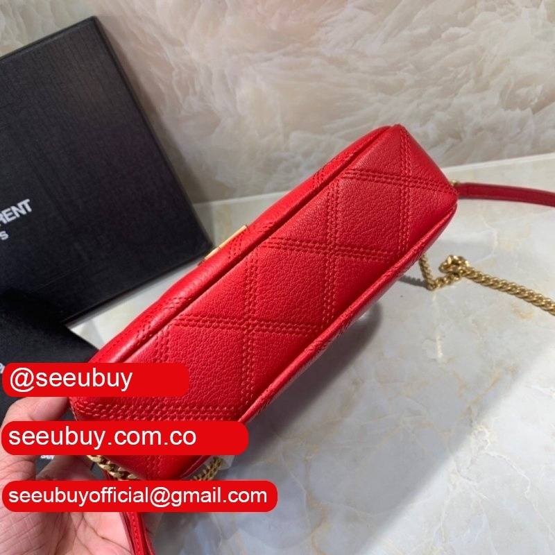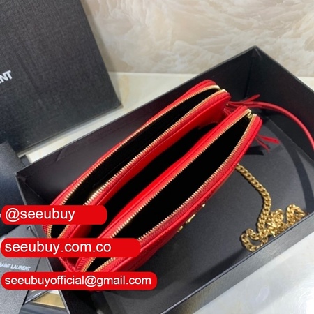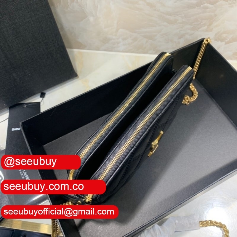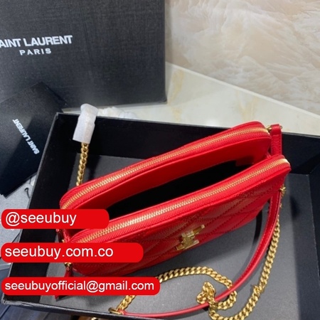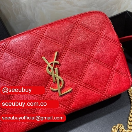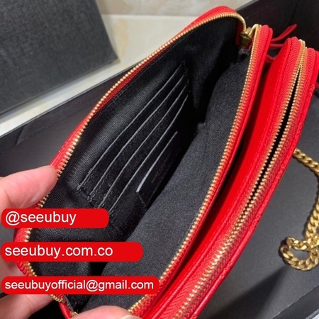 Cheap YSL Saint Laurent Becky chain wallet black/red quilted lambskin