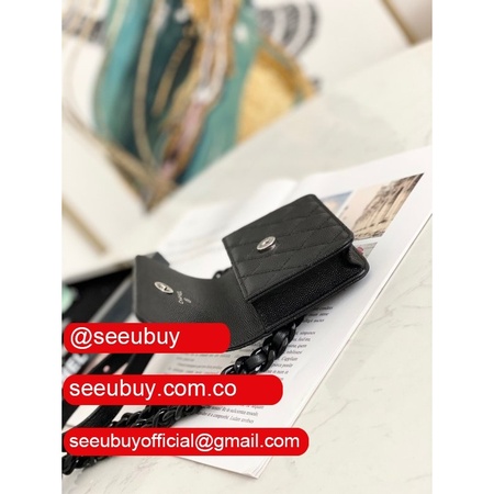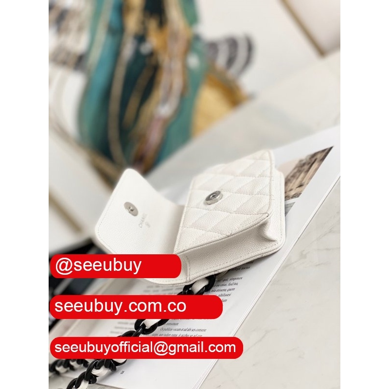 High Quality Black/Pink/Blue/Brown AP2119 Flap Coin Purse Clutches with Chain Iridescent Grained