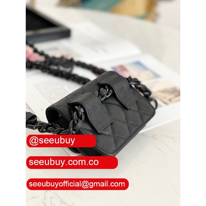 Designer Luxury AP2358 Clutch Chain Metallic Calfskin & Ruthenium-Finish Metal