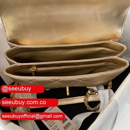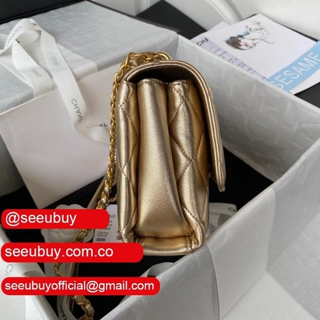 Top Seller best replica AS2734 Mini Flap Bag Metallic Lambskin Gold-Tone