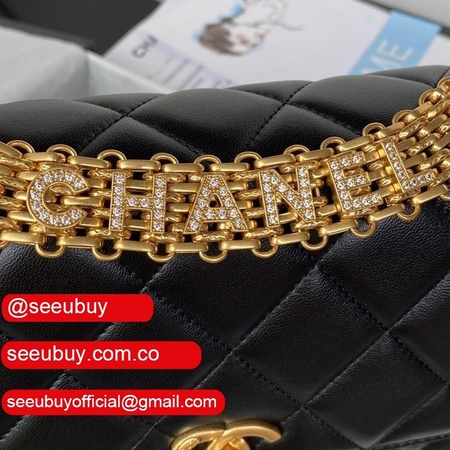 Designer Inspired AS3241 Flap Bag Strass & Gold-Tone Metal Lambskin