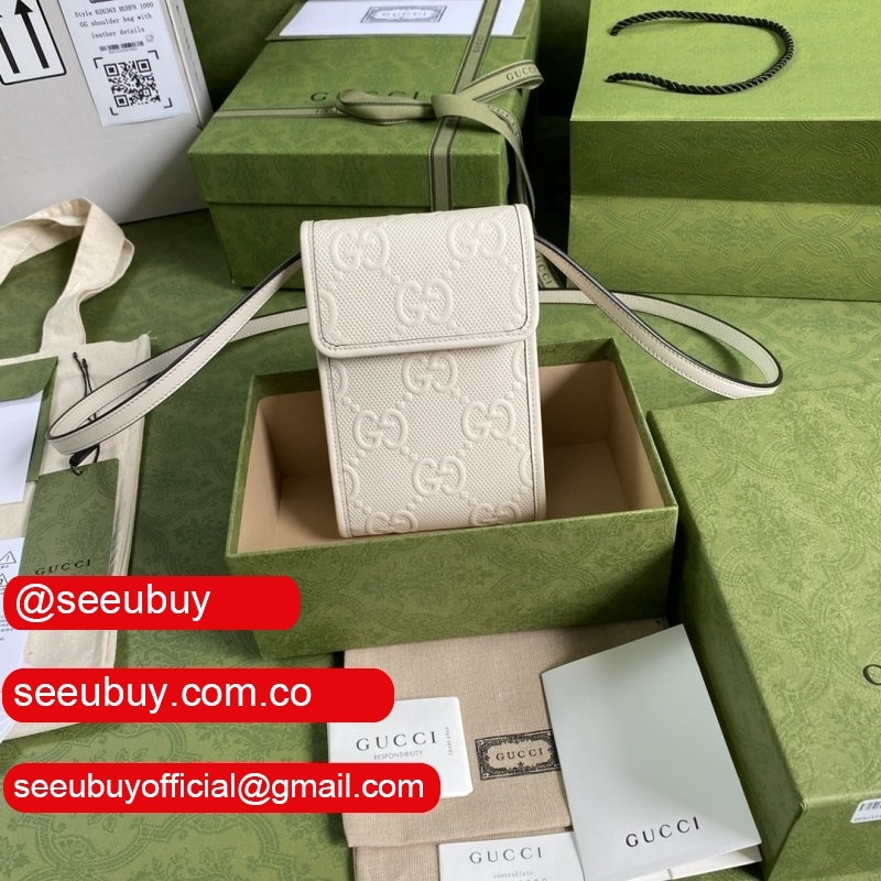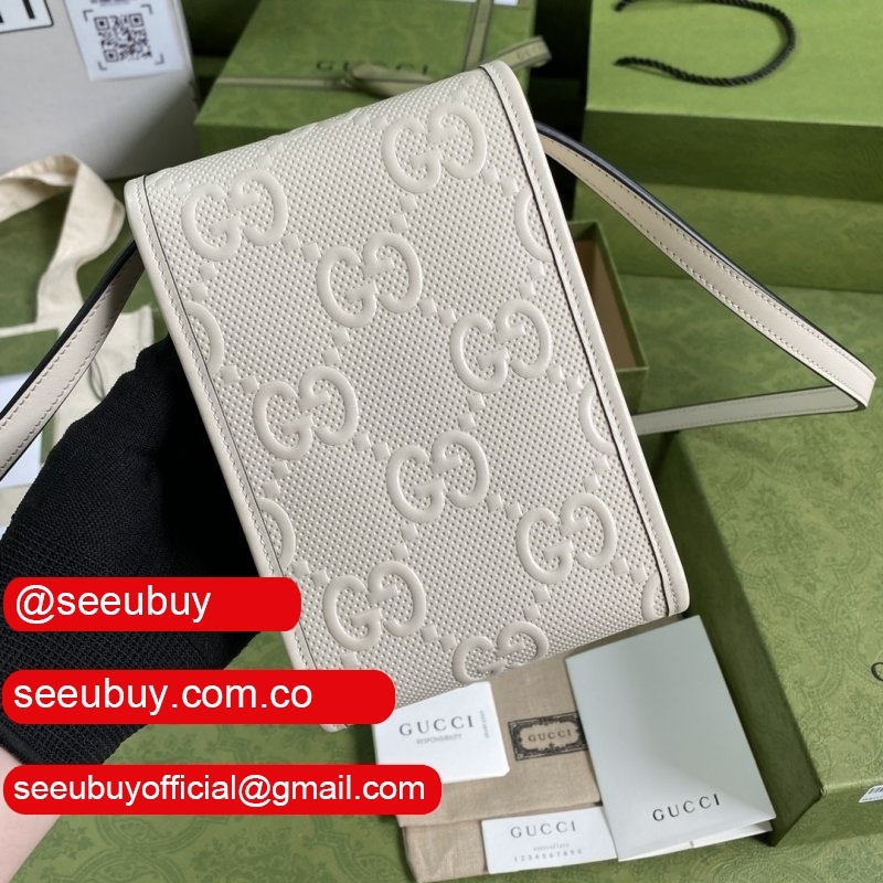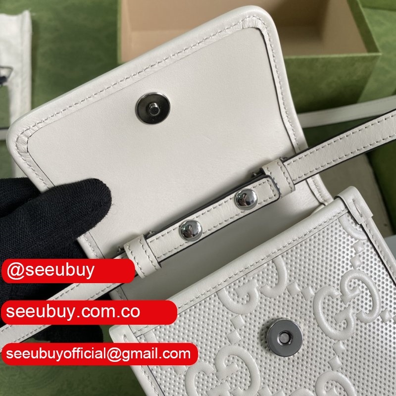 Designer Replica Gucci 625571 GG embossed mini White bag