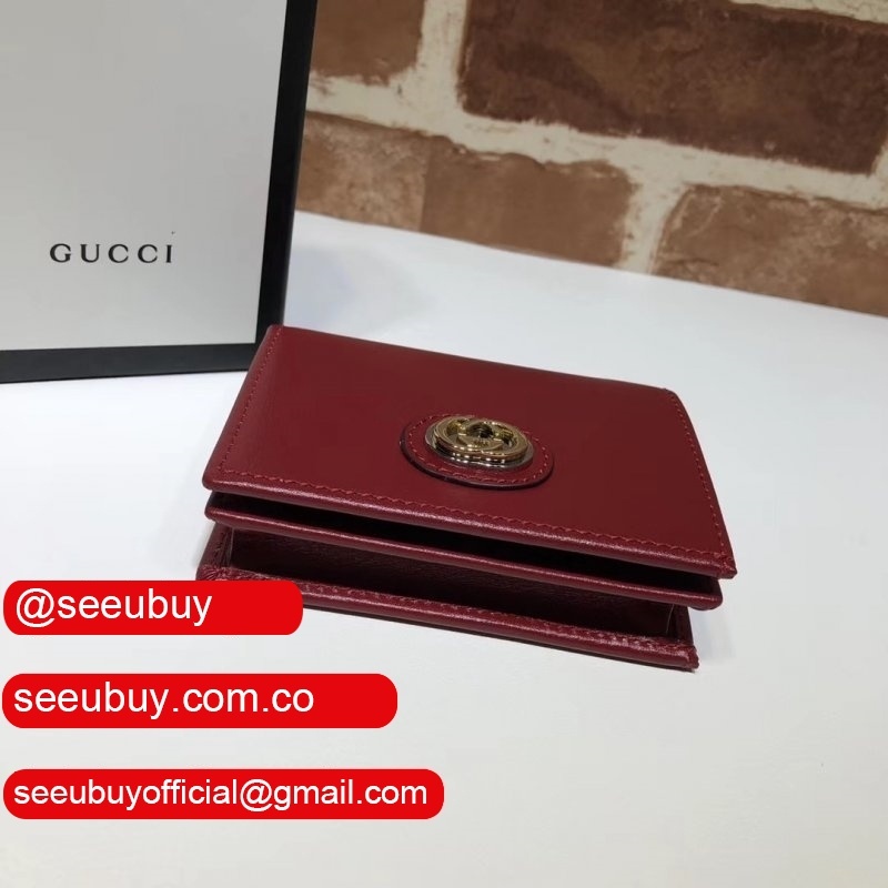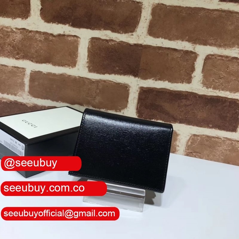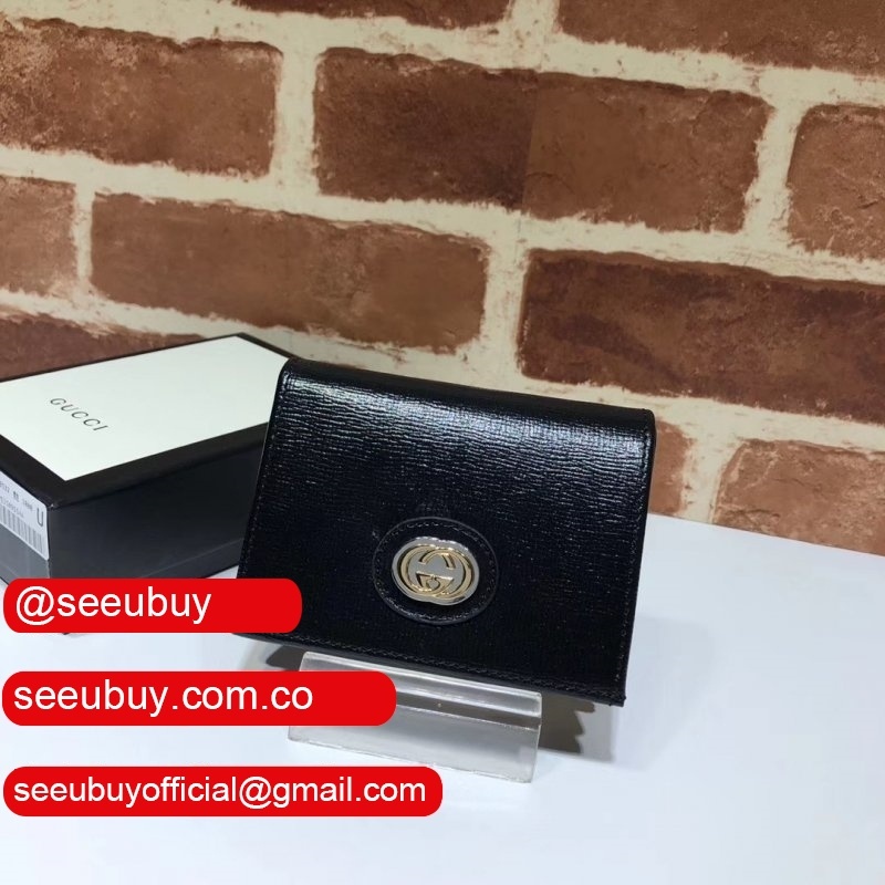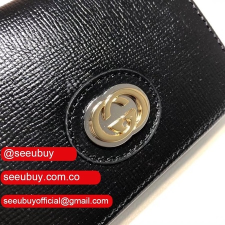 Fake Gucci Black Leather Card Case Wallet With Interlocking G598532