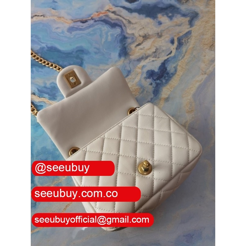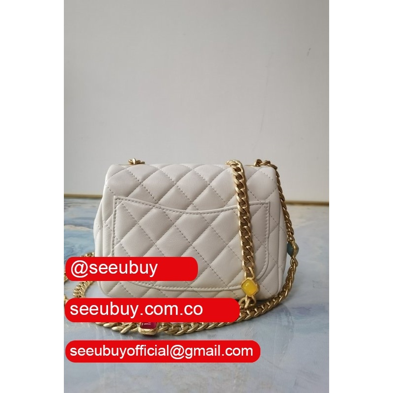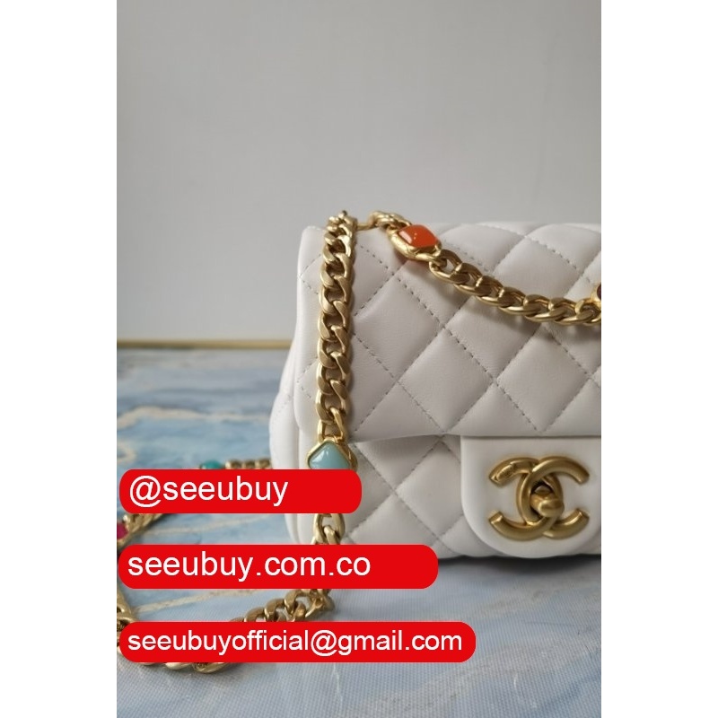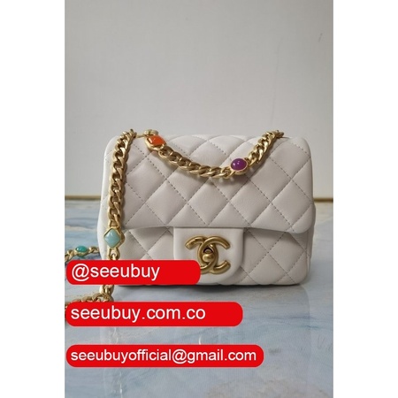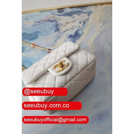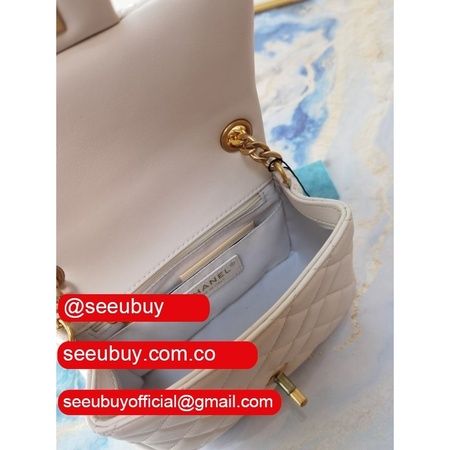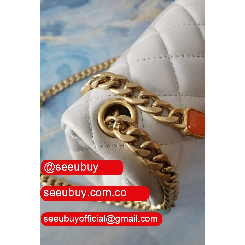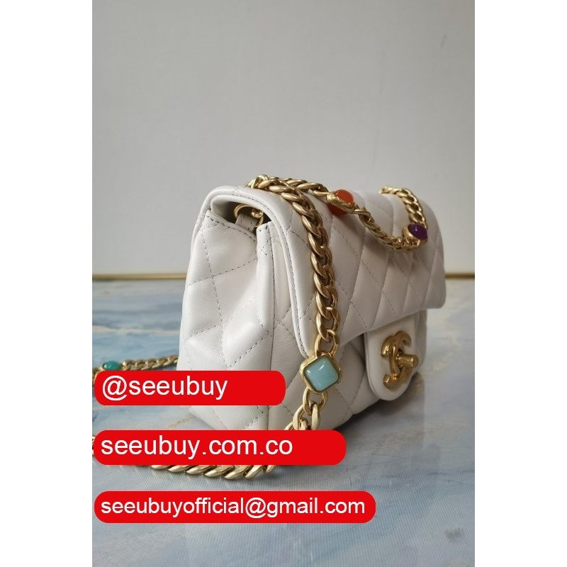 Luxury AS2431 Grained Calfskin & Gold-Tone Metal White Mini Flap