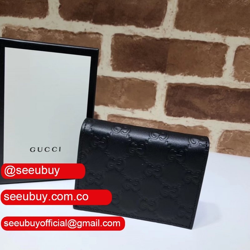 Fashion Gucci Replica Black Gucci Signature Card Case 522869 Wallet