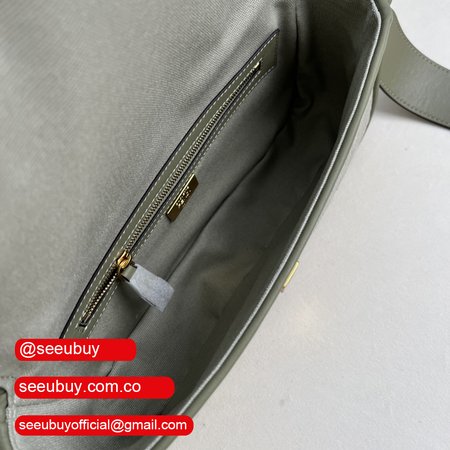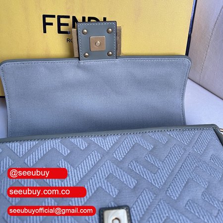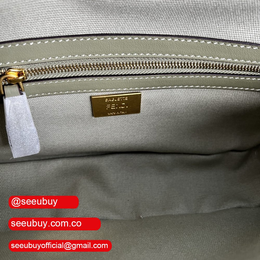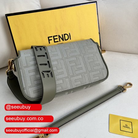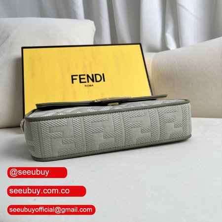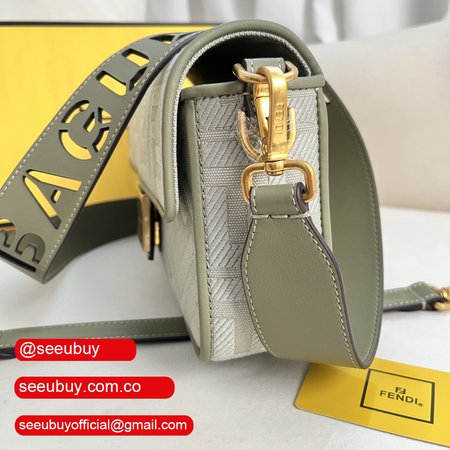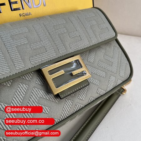 Fendi Baguette Light Green Canvas Bag with FF Embroidery