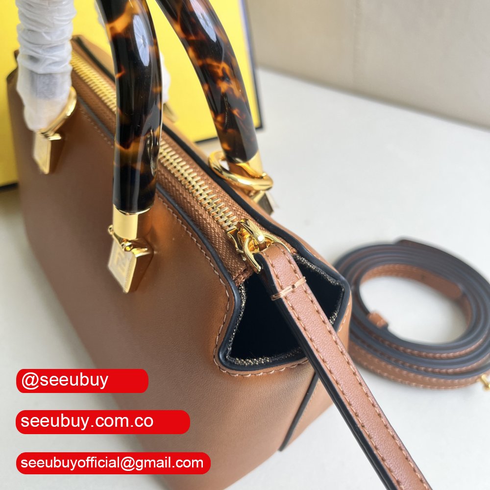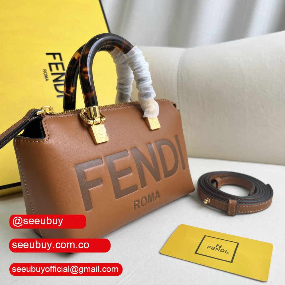 Fendi By The Way Mini Small Brown Leather Boston Bag