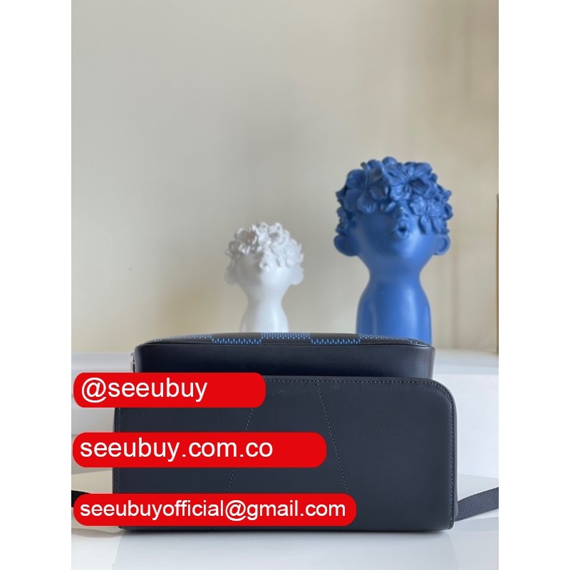 Navy blue and black Damier Infini 3D cowhide leather