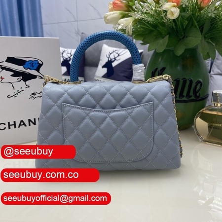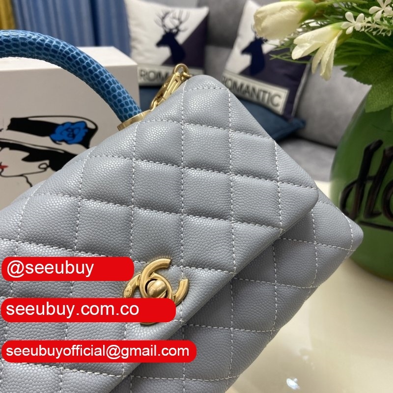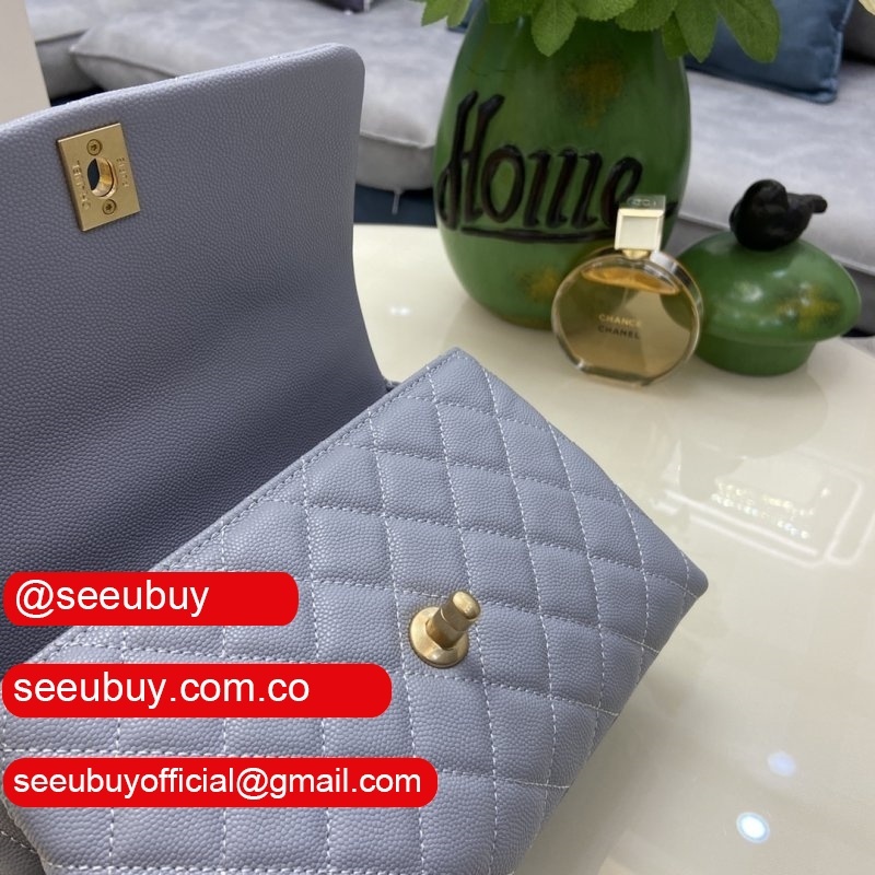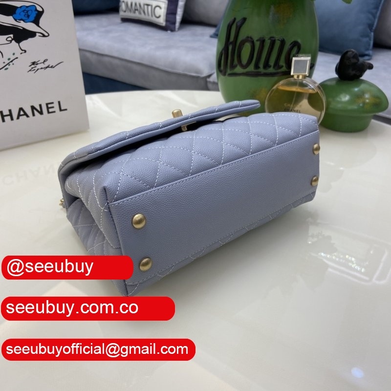 Grained Calfskin & Gold-Tone Metal Blue Flap Replica Bag