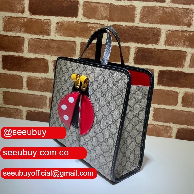 Gucci 664083 Luxury Children's ladybug tote bag in beige and ebony GG Replica