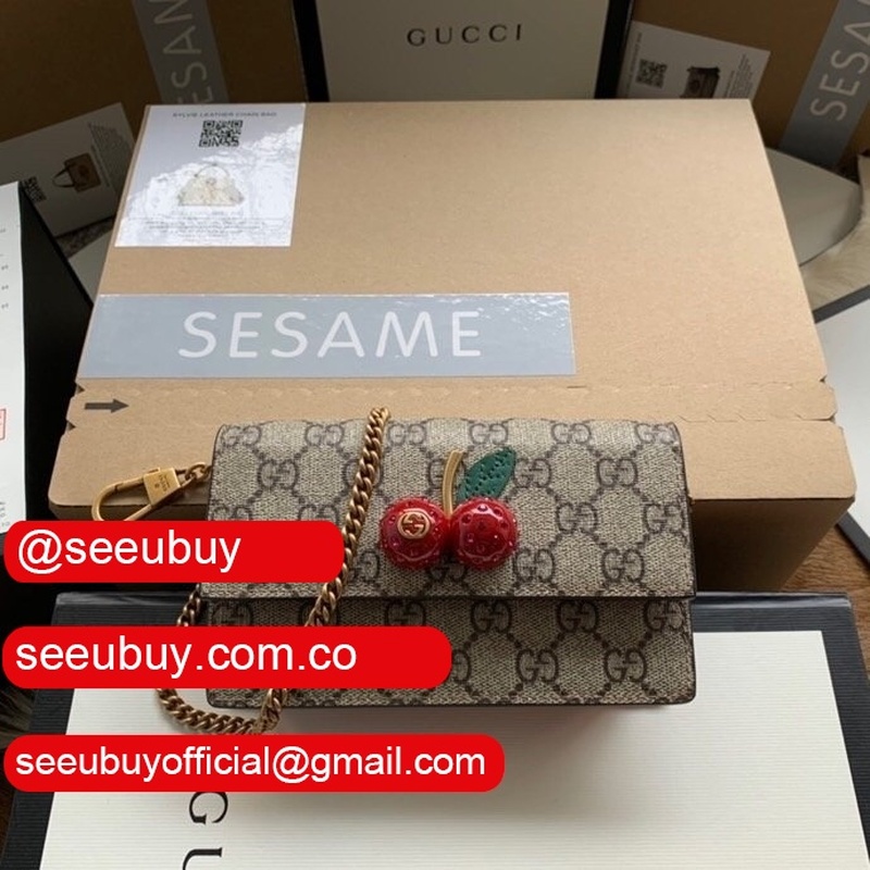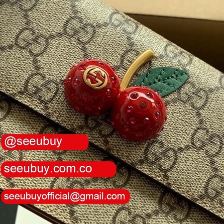Gucci Designer Beige GG Supreme mini bag with cherries