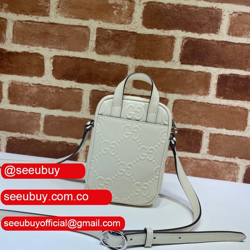 Gucci Knockoff 658553 Luxury GG embossed mini bag in black/white leather
