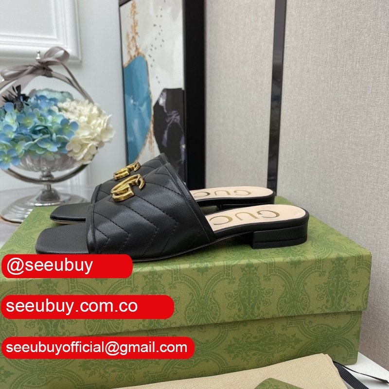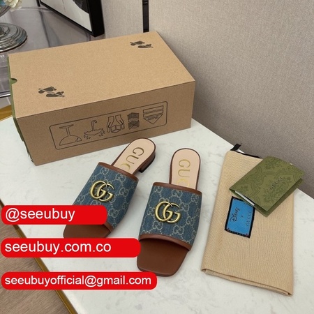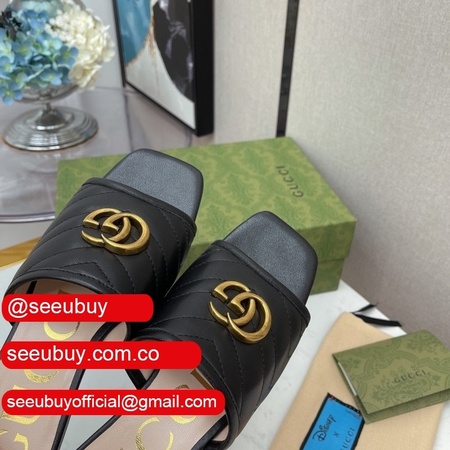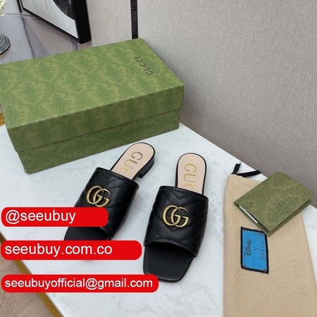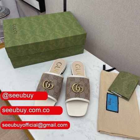 2021 New Gucc* Double G Buckle Flat Heel Slippers