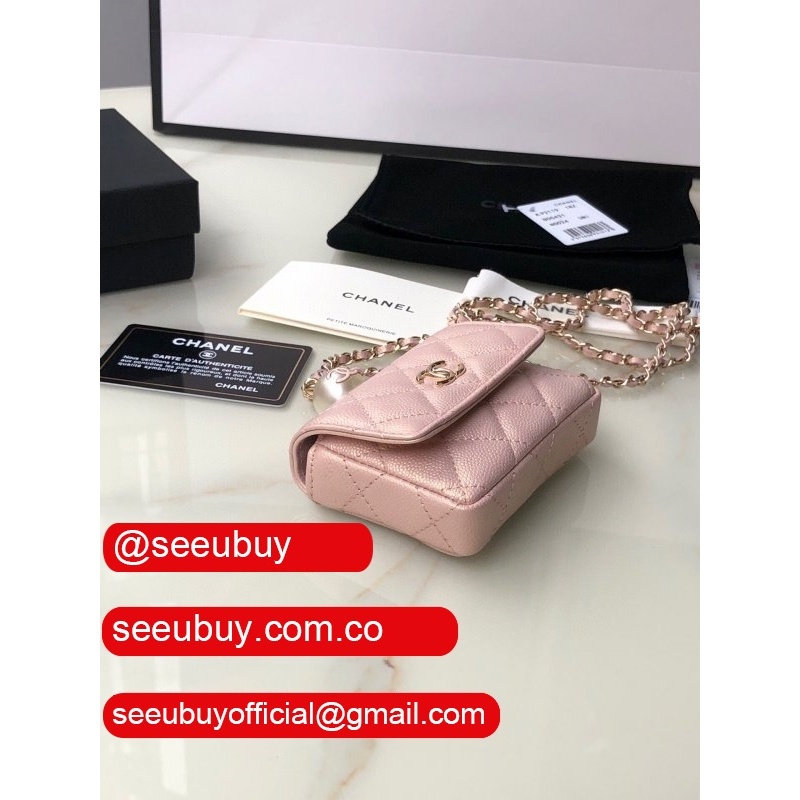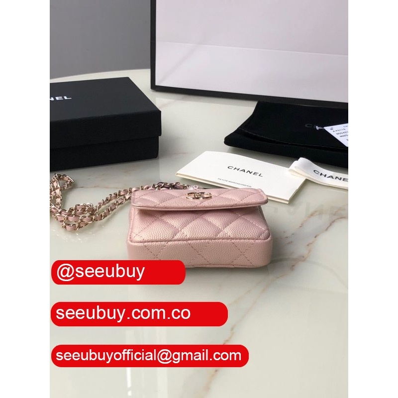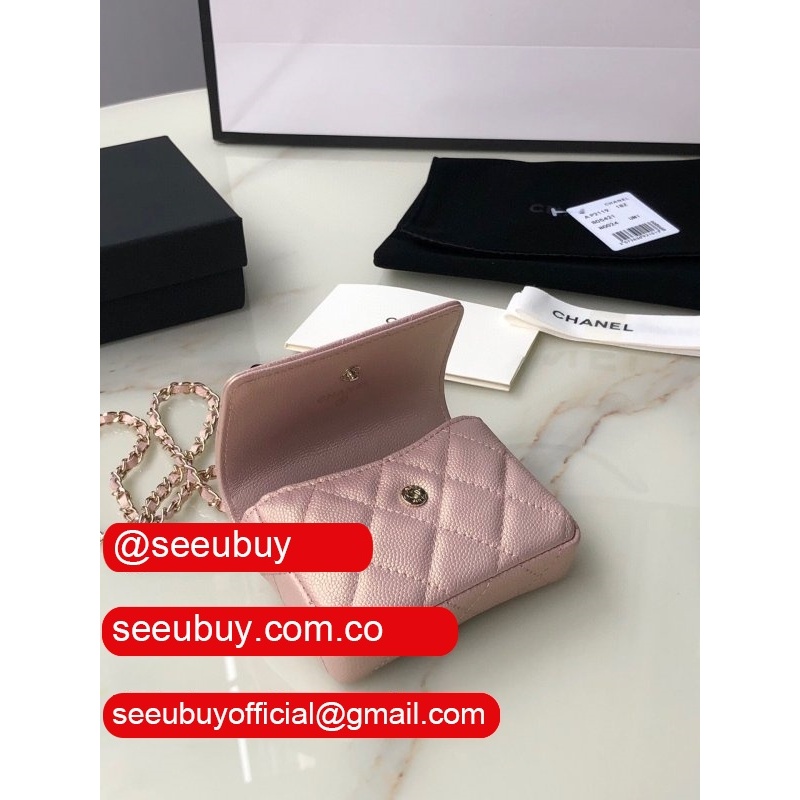 High Quality Black/Pink/Blue/Brown AP2119 Flap Coin Purse Clutches with Chain Iridescent Grained