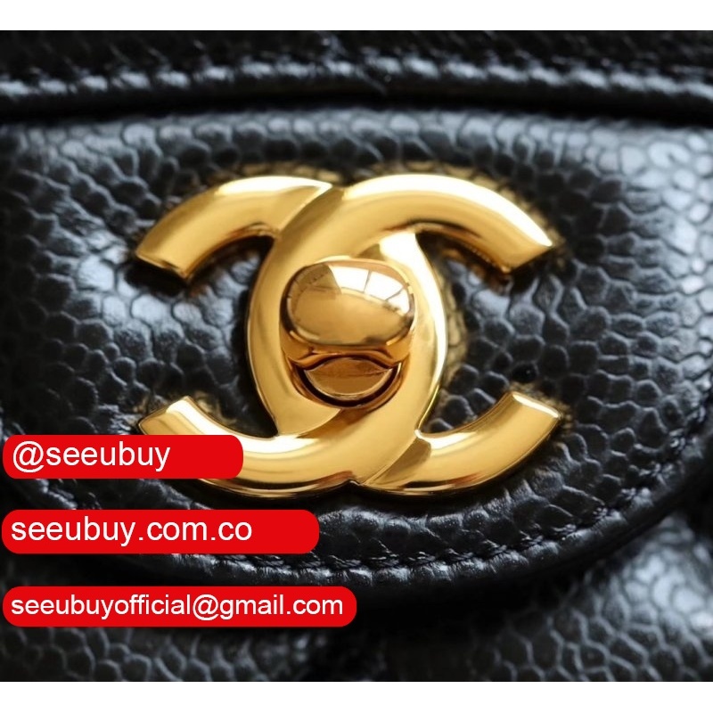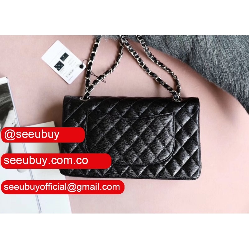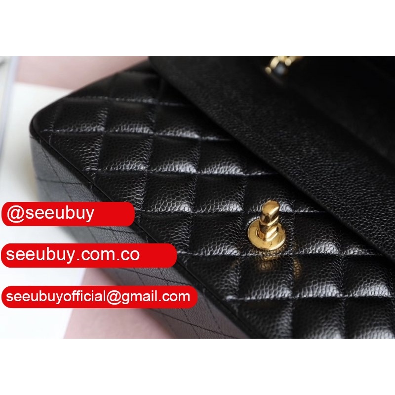 High Quality Caviar 25.5CM Black Classic Replica Handbags