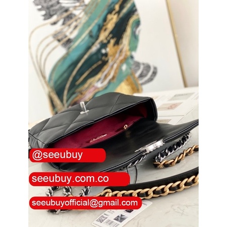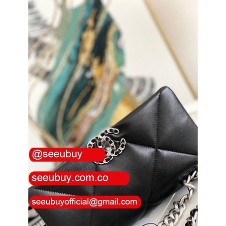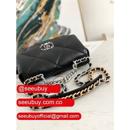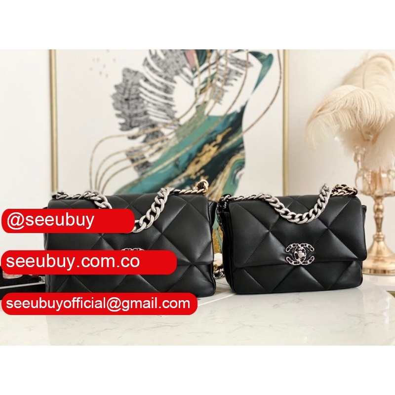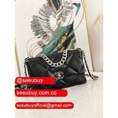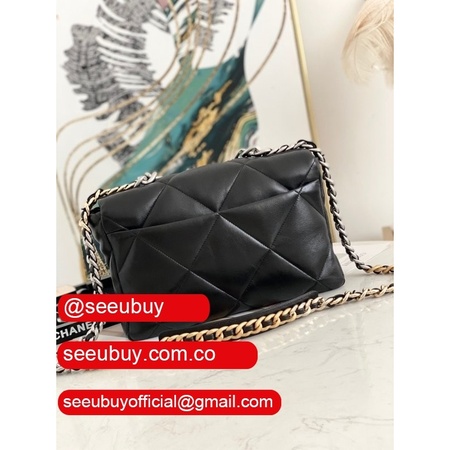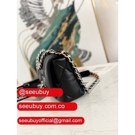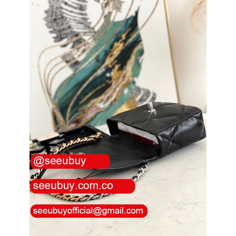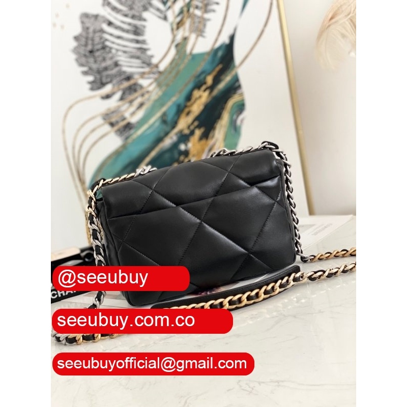 Best Wholesale 19 Flap Replica Bag AS1160 Lambskin Gold-Tone Black
