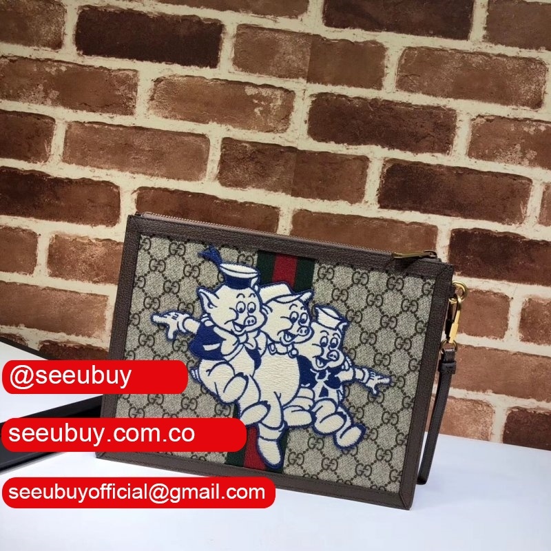 High Quality Gucci GG Supreme Pouch With Three Little Pigs 557697 Clutches