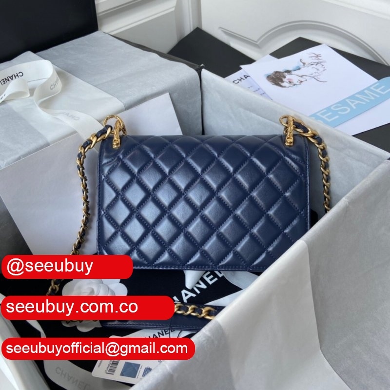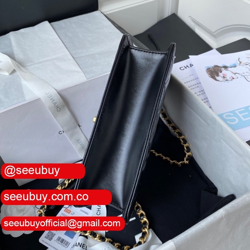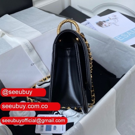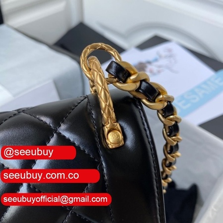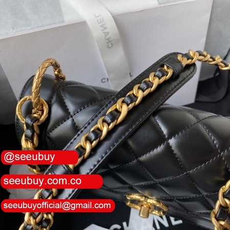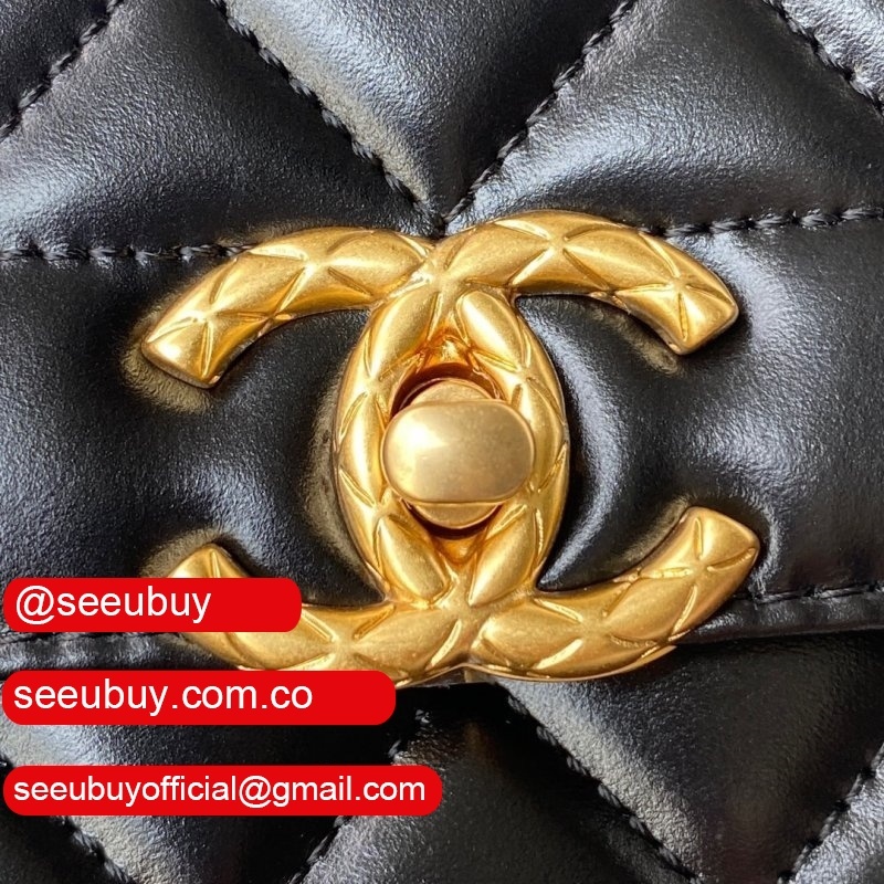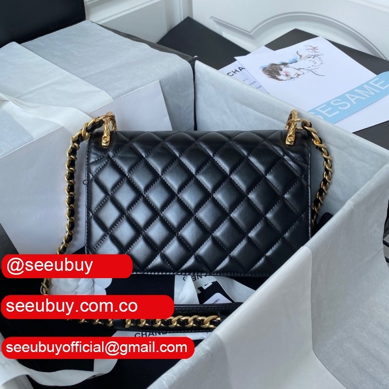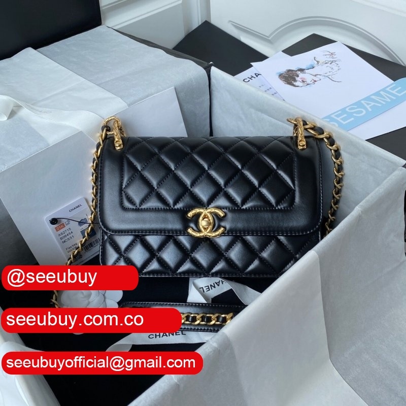 New 2022 Flap Replica Bag Black Lambskin Gold Metal AS2842