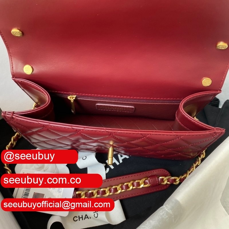 2022 High Quality Small Flap Replica Bag Lambskin Gold-Tone & Lacquered Metal