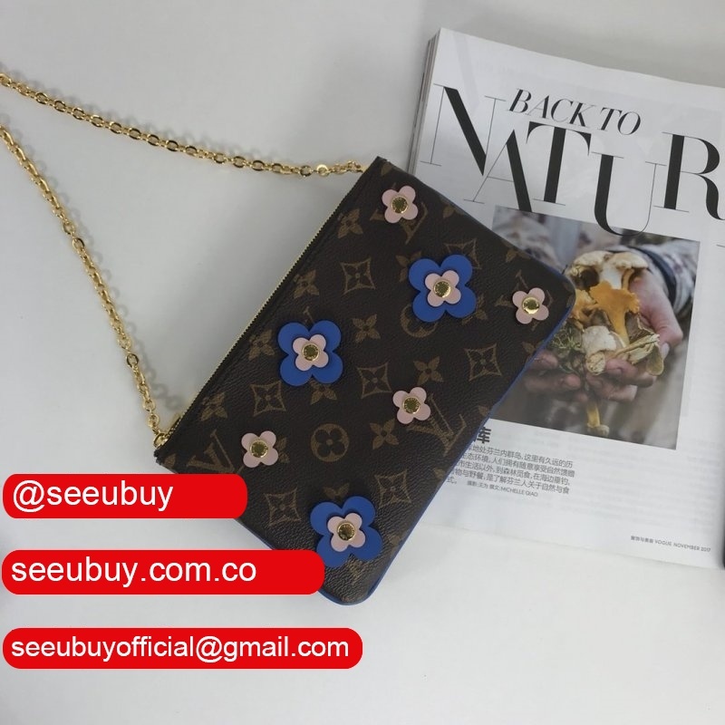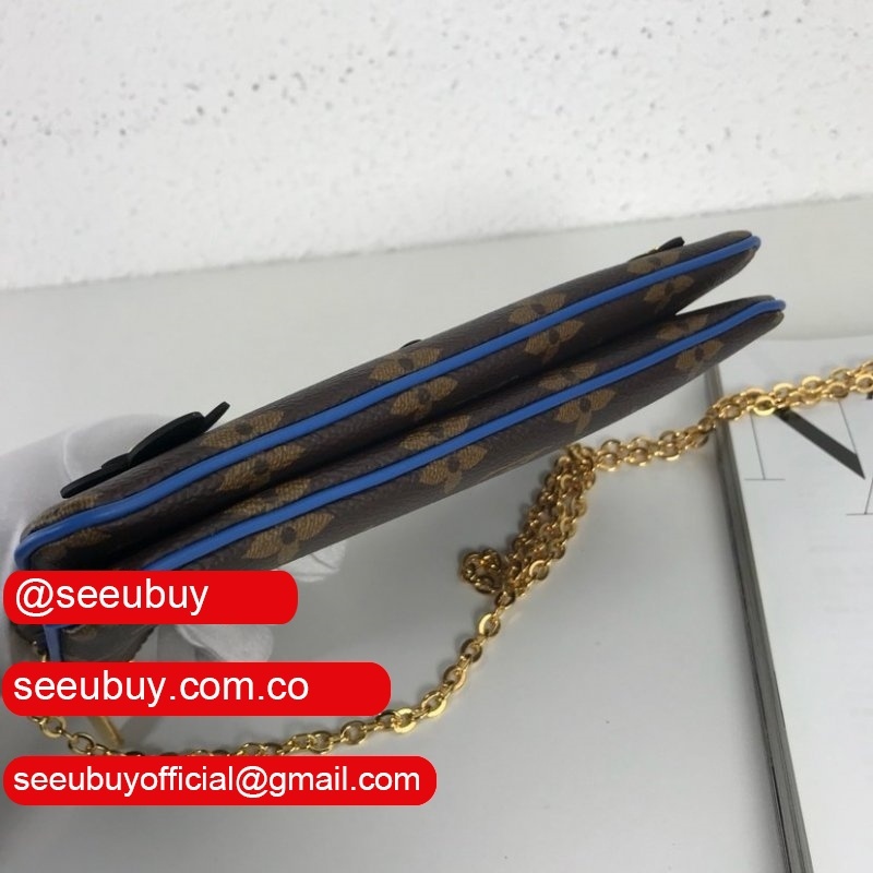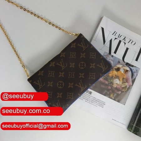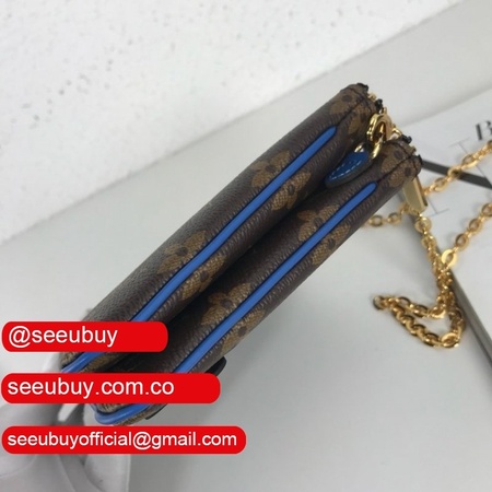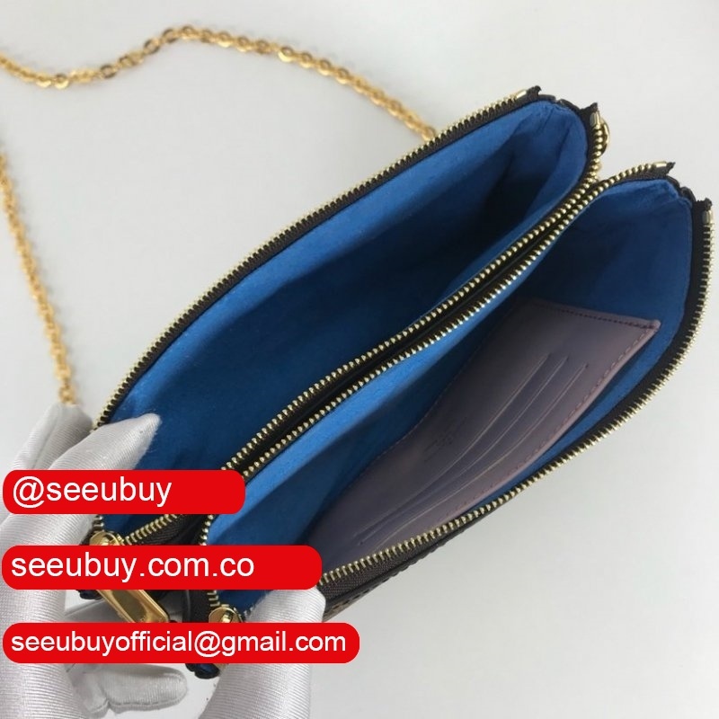 High Quality Replicas Women's Luxury POCHETTE DOUBLE ZIP M63905 Blue lv Monogram Leather Pochette Felicie Bag