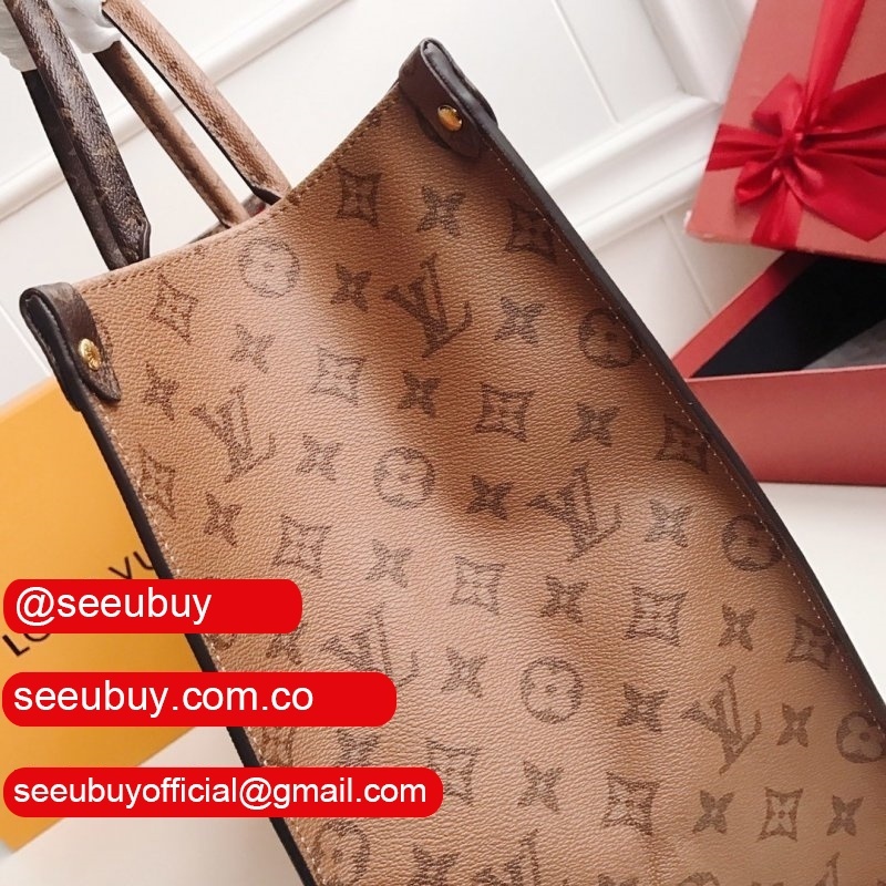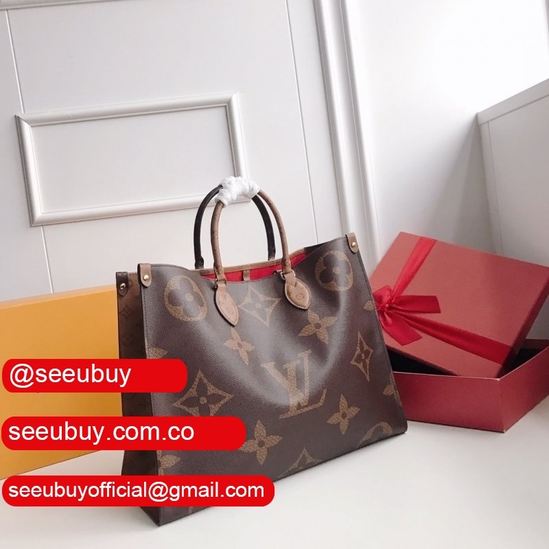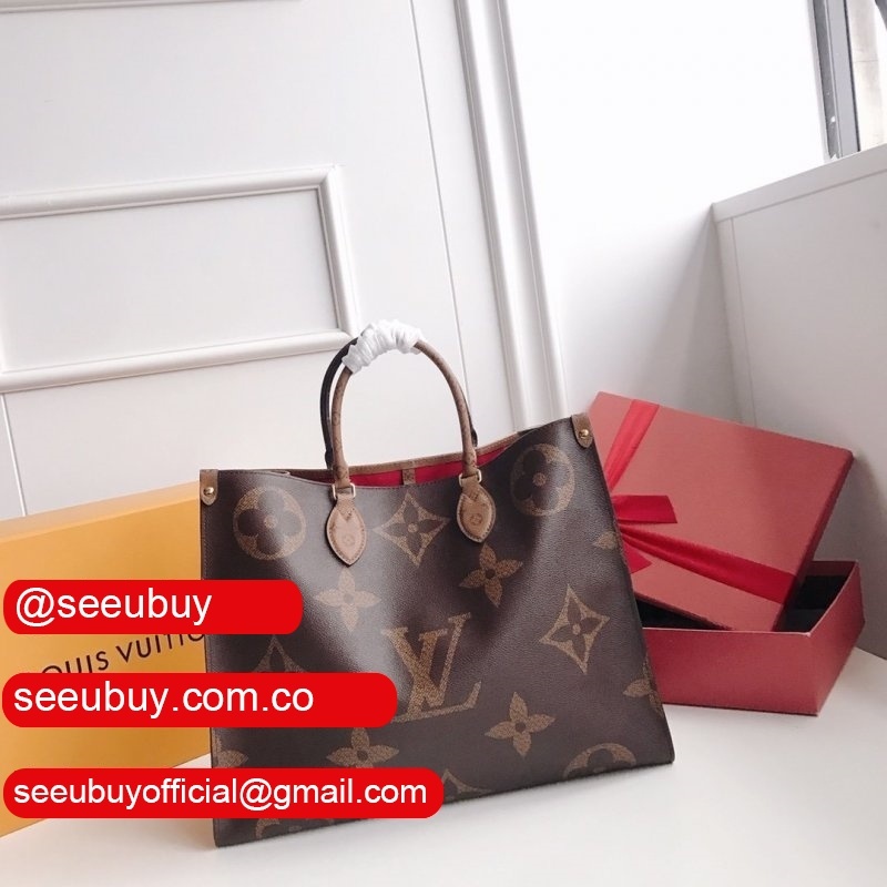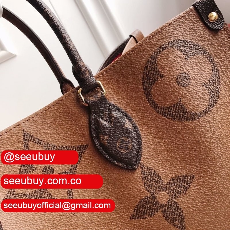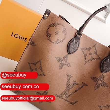 Fashioned from Monogram Giant canvas, the Onthego tote bag is as striking as it is practical. A Monogram Reverse pattern on the sides and handles creates a stylish contrast in color and scale. With its generous capacity, removable shoulder straps and iconic Toron top handles, this versatile GM model is an ideal bag for everyday wear.