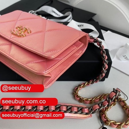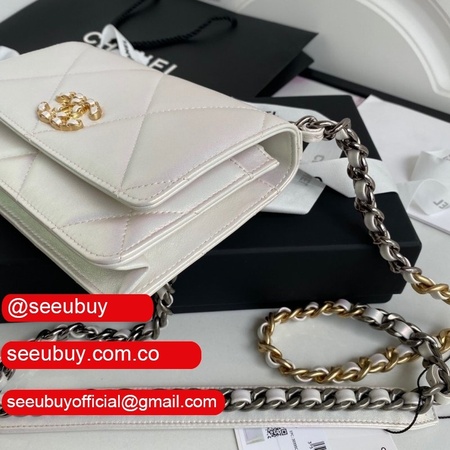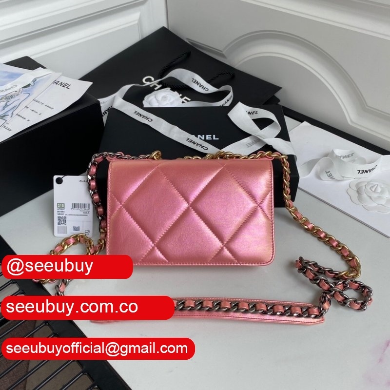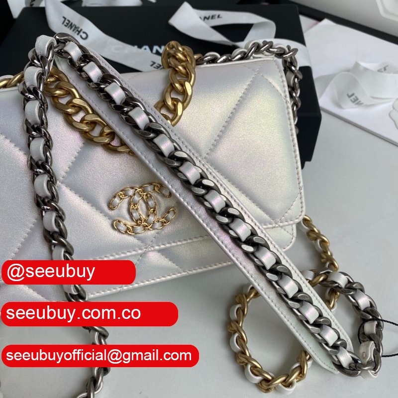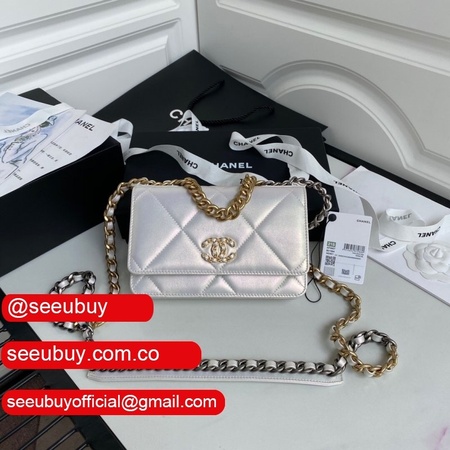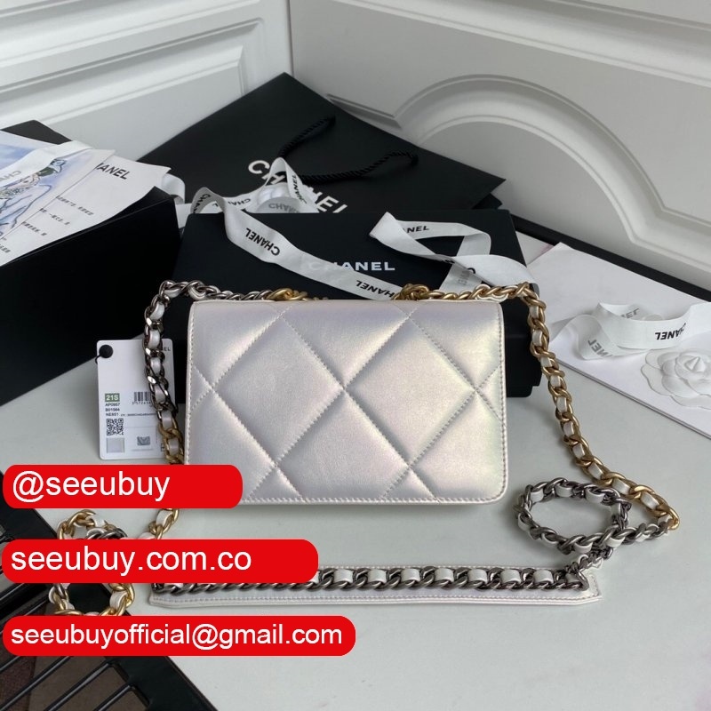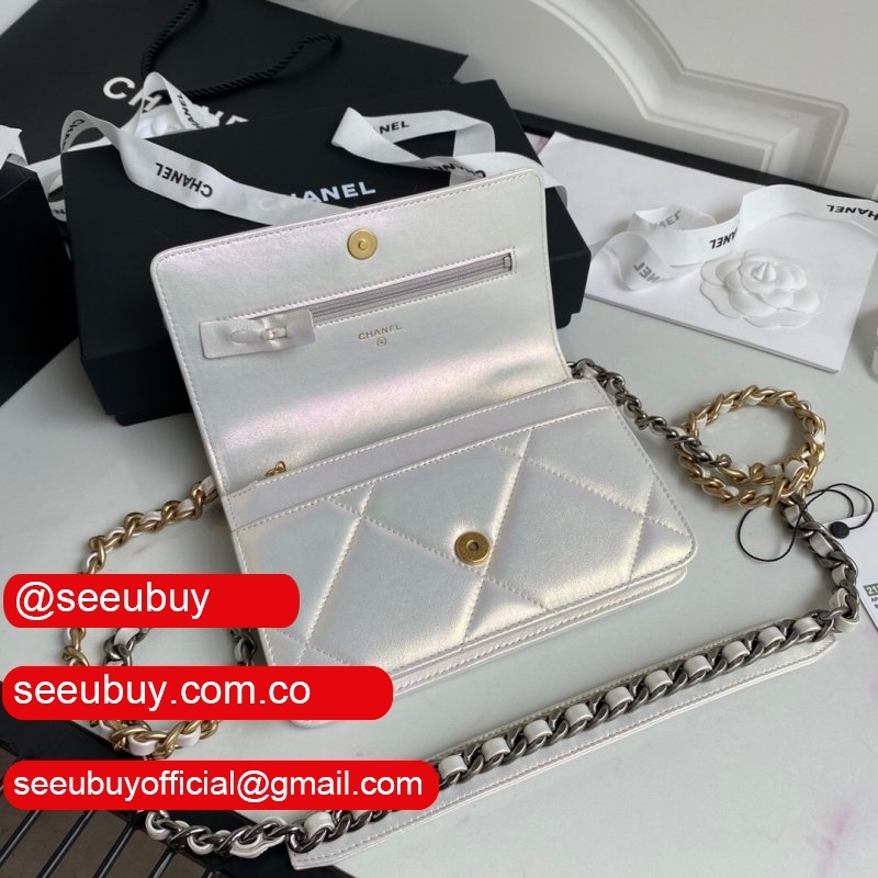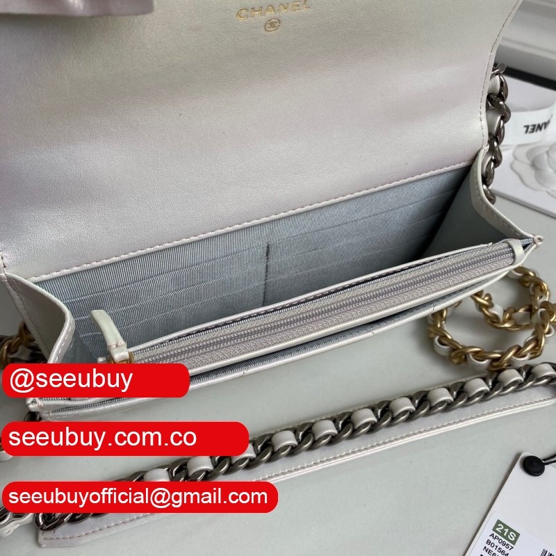 Knockoff CC 19 Wallet on Chain AP0957 Silver/Red