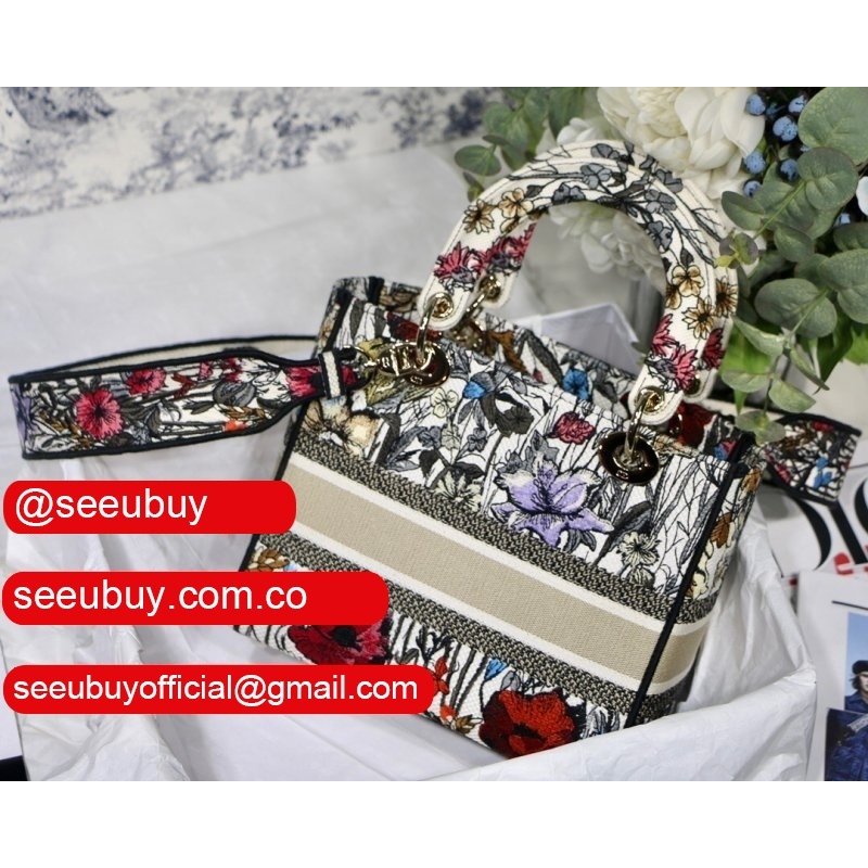 Lady D-Lite Bag Multicolor Lady Dior 24cm Replicas Paisley Embroidery