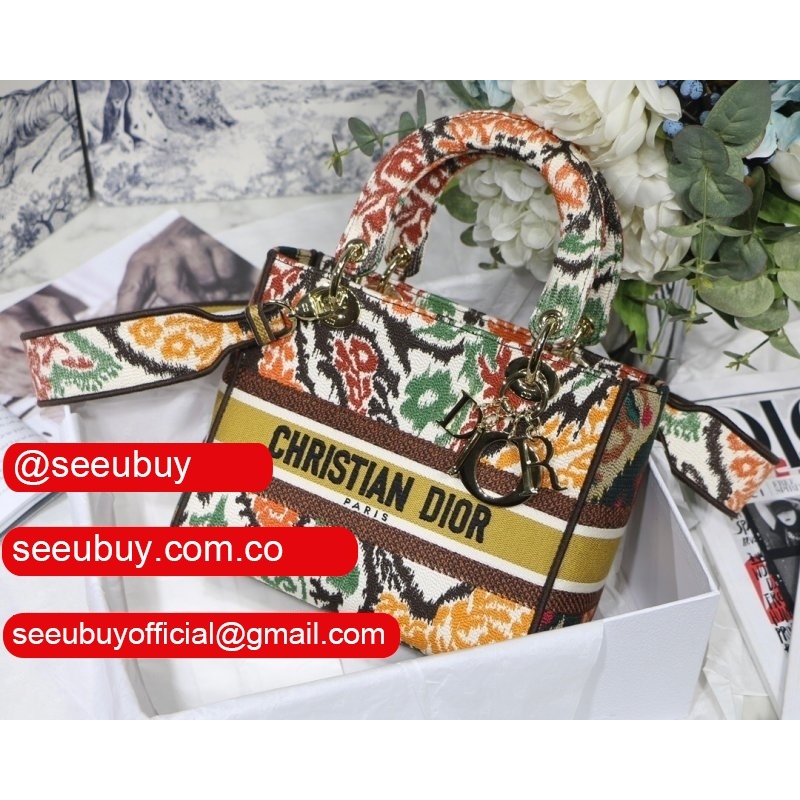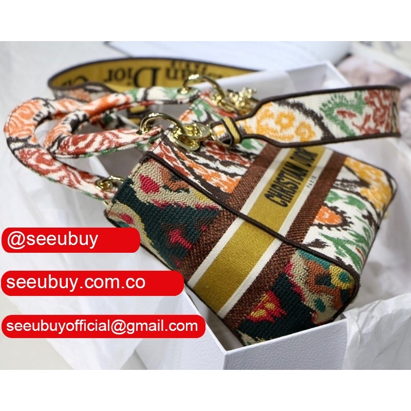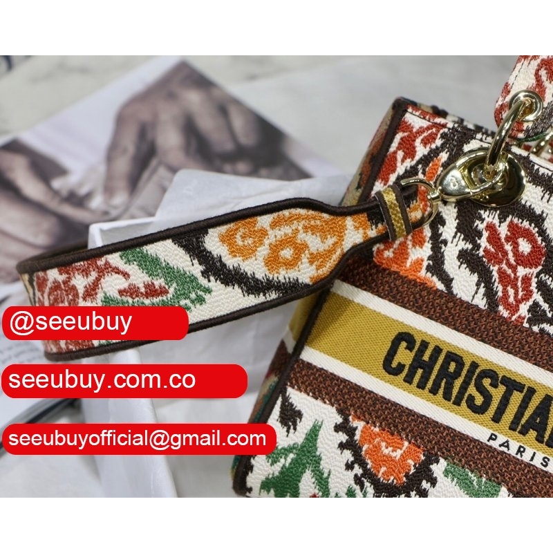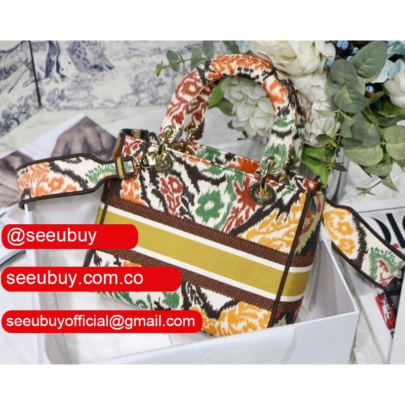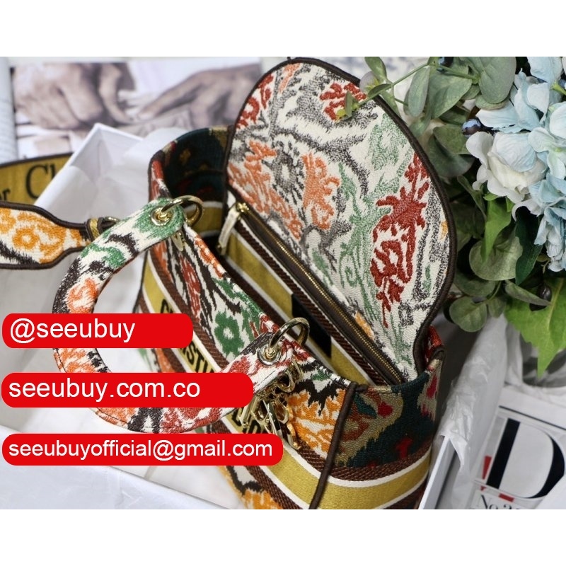 Lady Knockoff Dior 24cm Yellow Multicolor Dior Paisley Embroidery