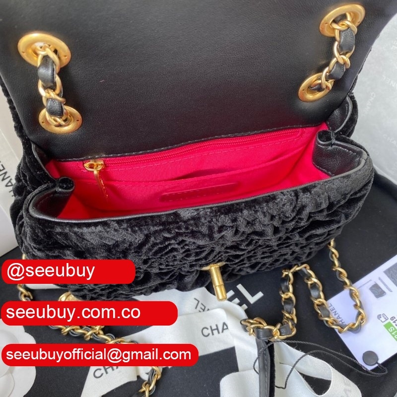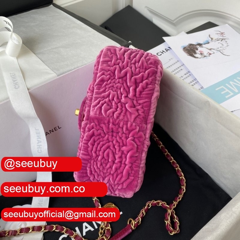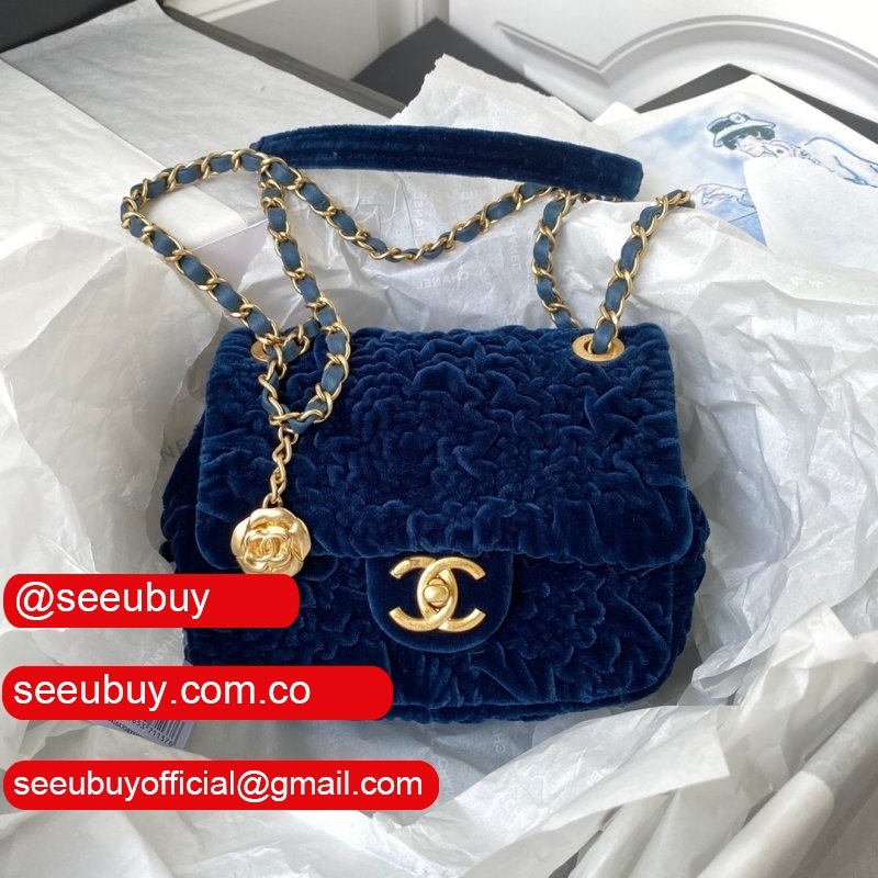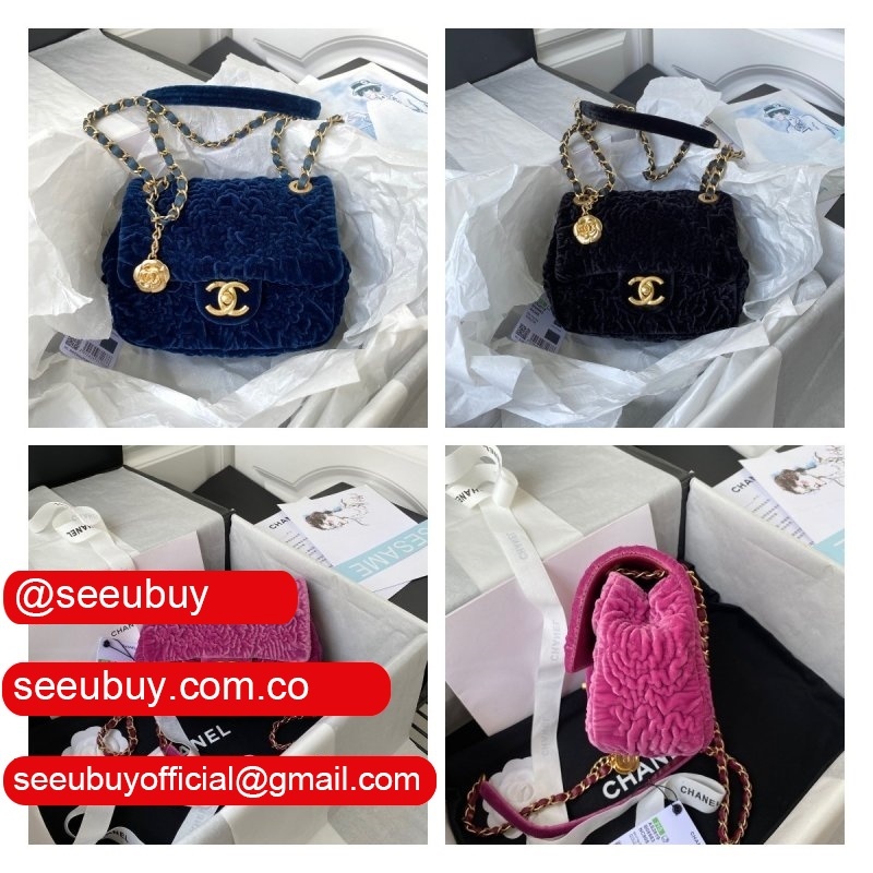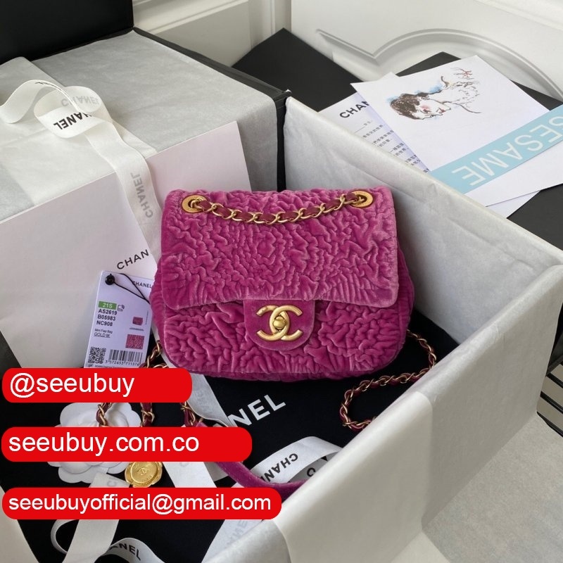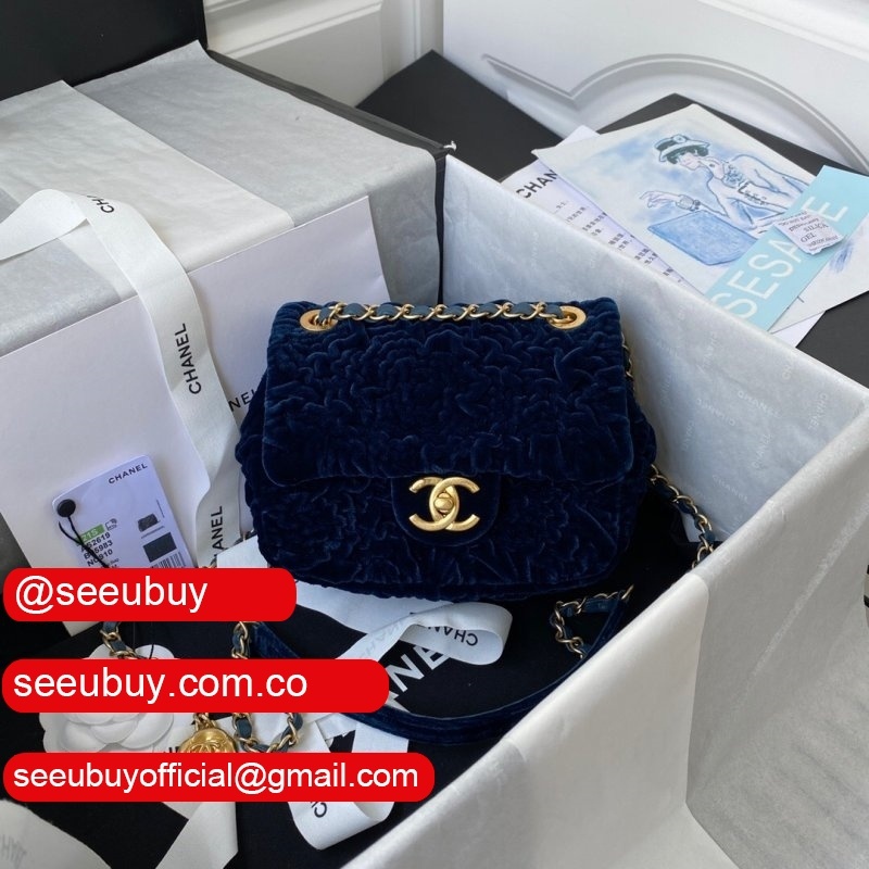 Luxury 7 Star Replica Mini Flap AS2619 Bag Velvet & Gold Metal Rose/Blue/Black