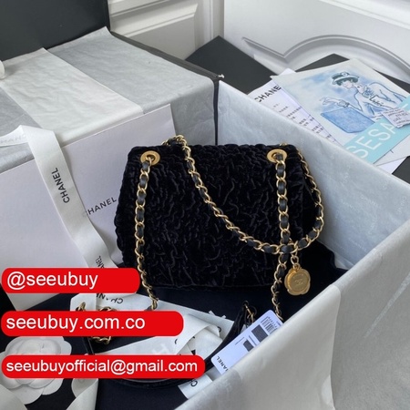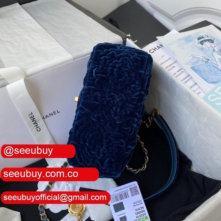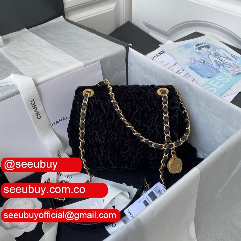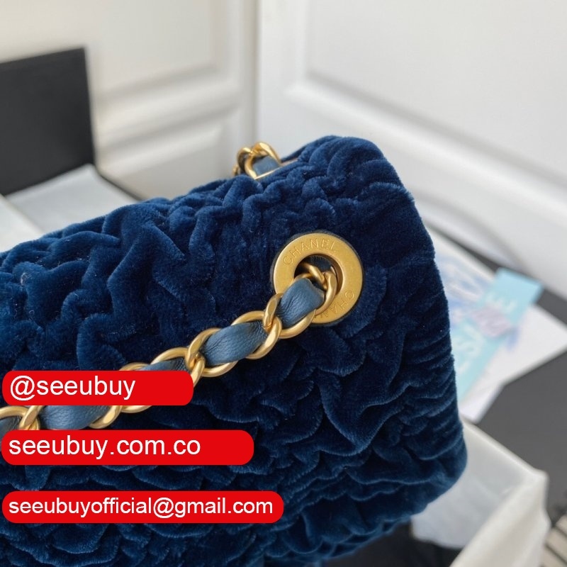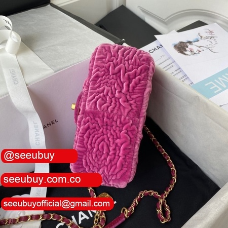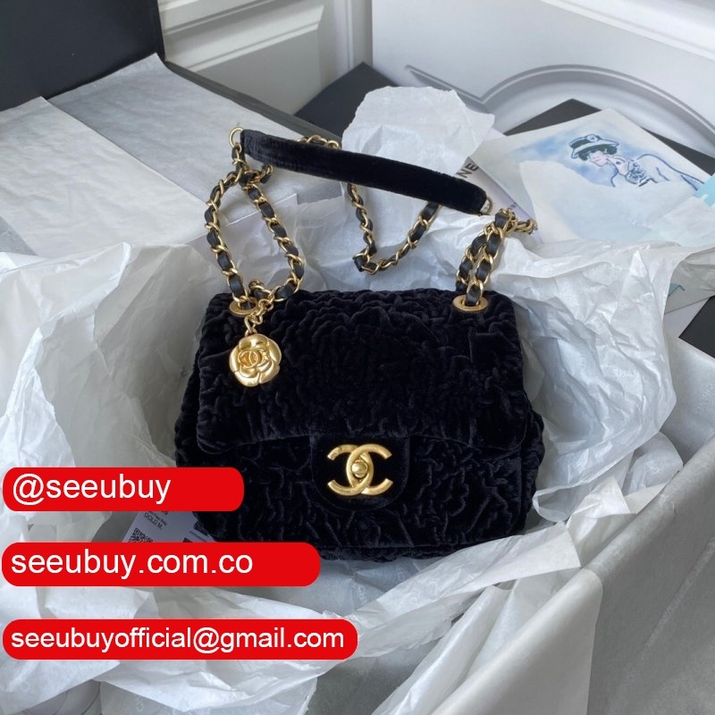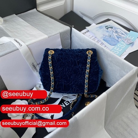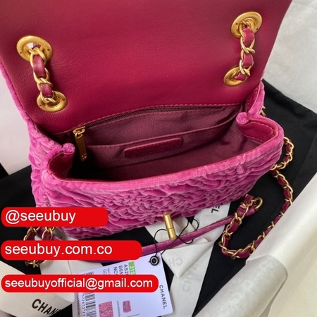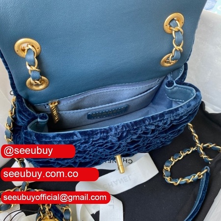 Luxury 7 Star Replica Mini Flap AS2619 Bag Velvet & Gold Metal Rose/Blue/Black