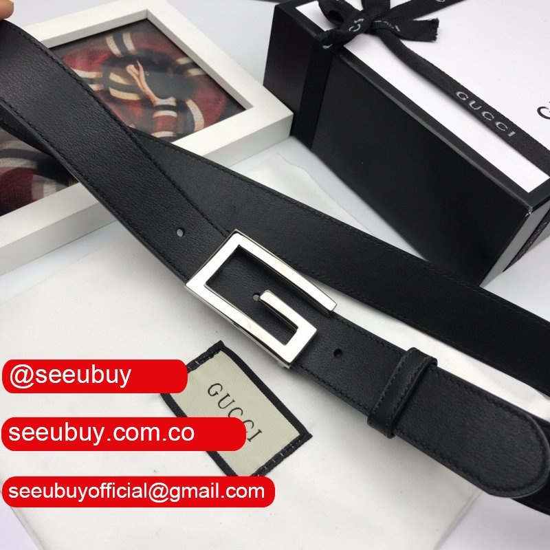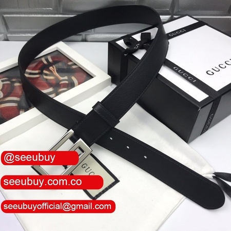 Luxury Gucci 35mm Buckle Black leather belt replica