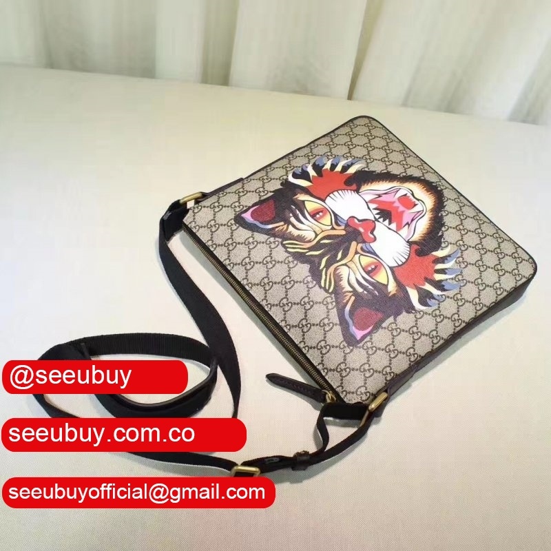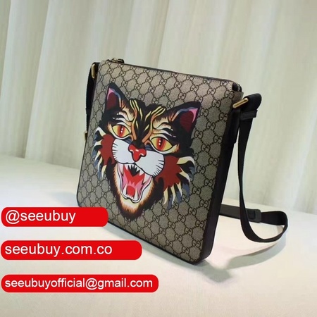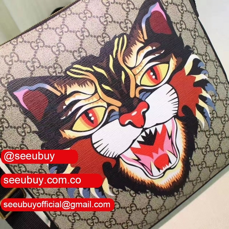 GG Supreme canvas with angry cat print, a material with low environmental impact