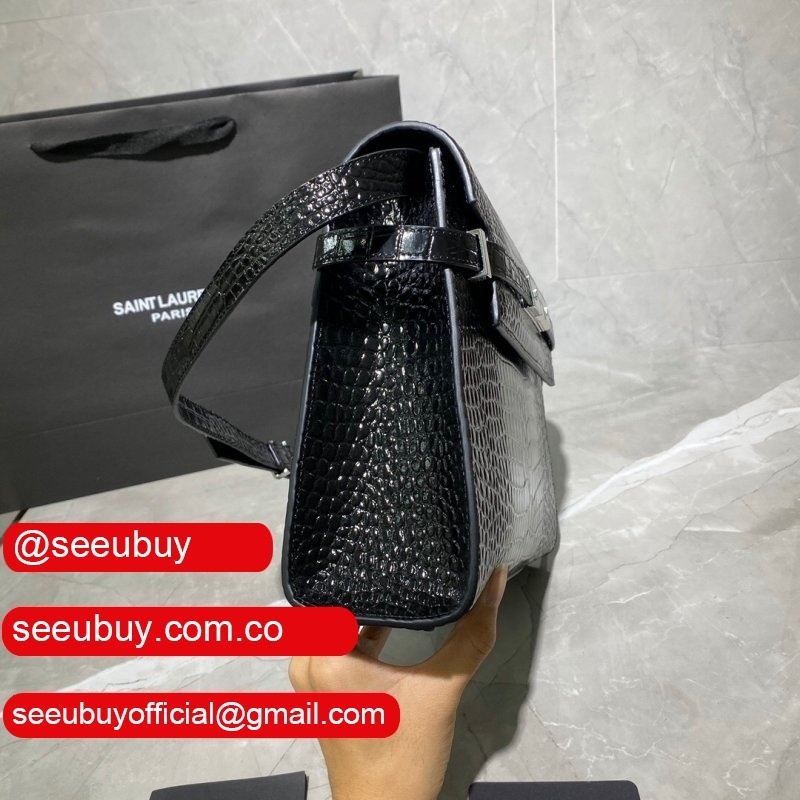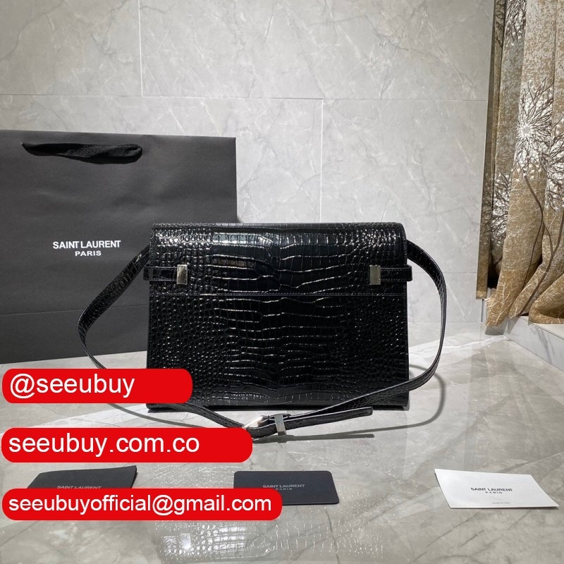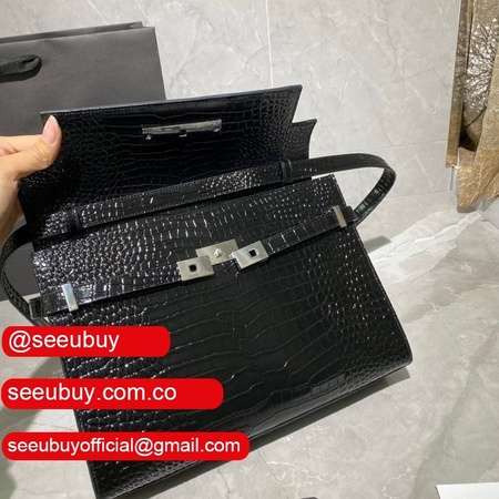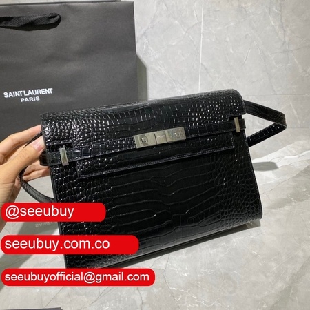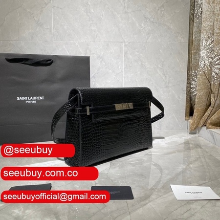 Top Quality Saint Laurent Leather Manhattan Shoulder Bag Golden Black
