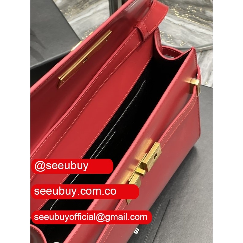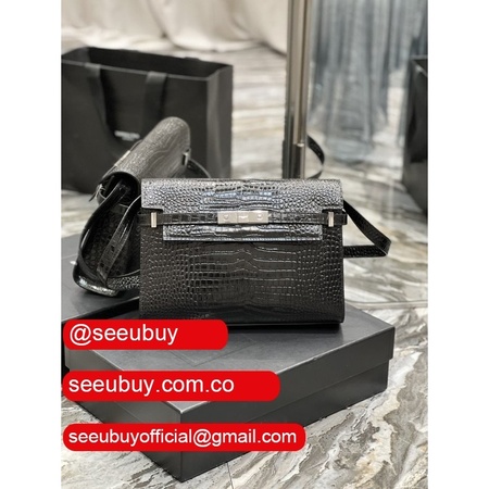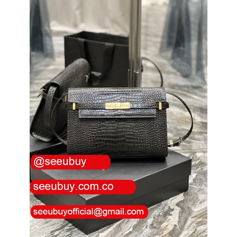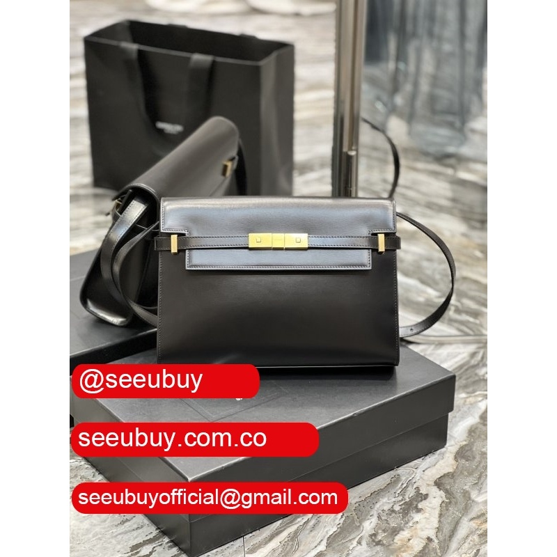 Top Quality Saint Laurent Leather Manhattan Shoulder Bag Golden Black