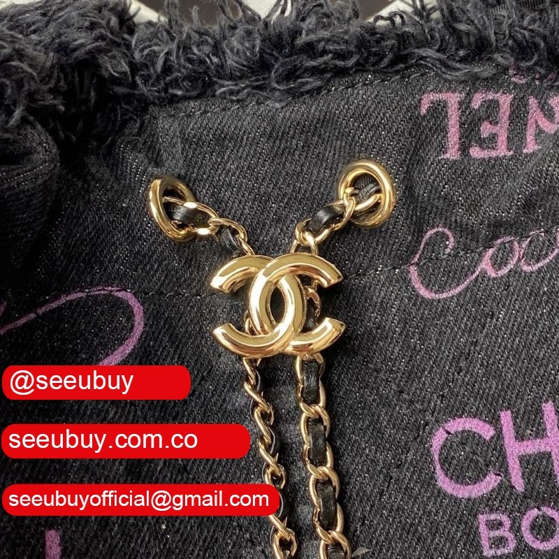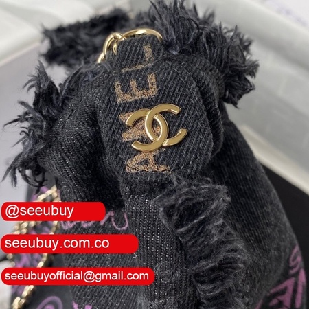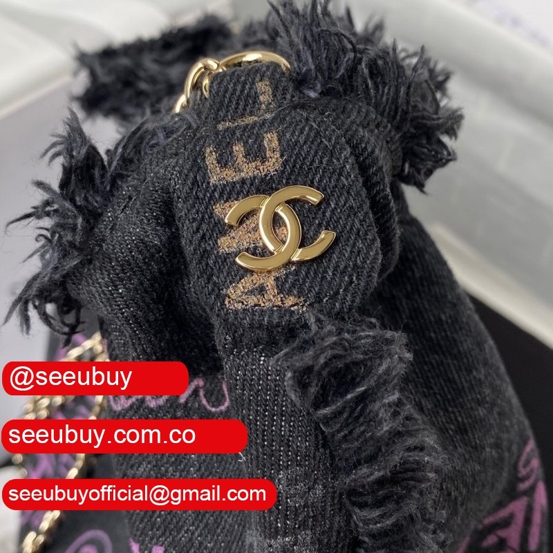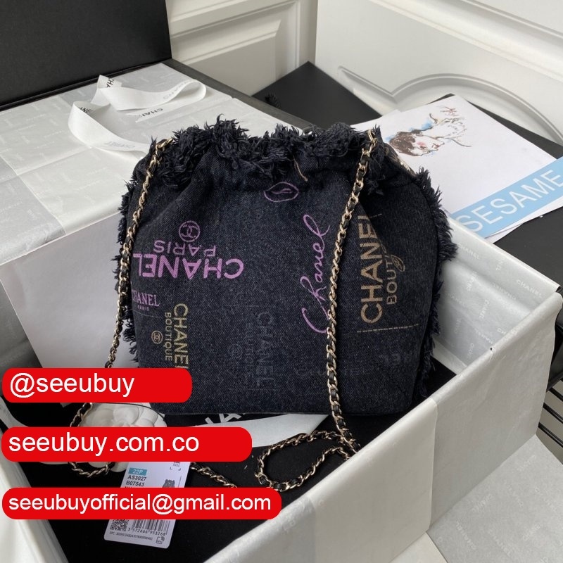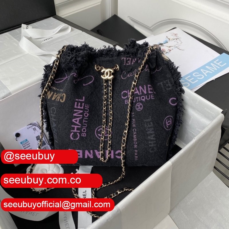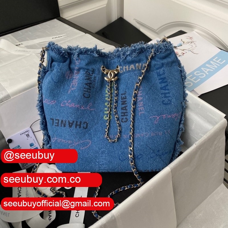 Replica Bucket High Quality AS3027 Bag Printed denim & gold-tone metal