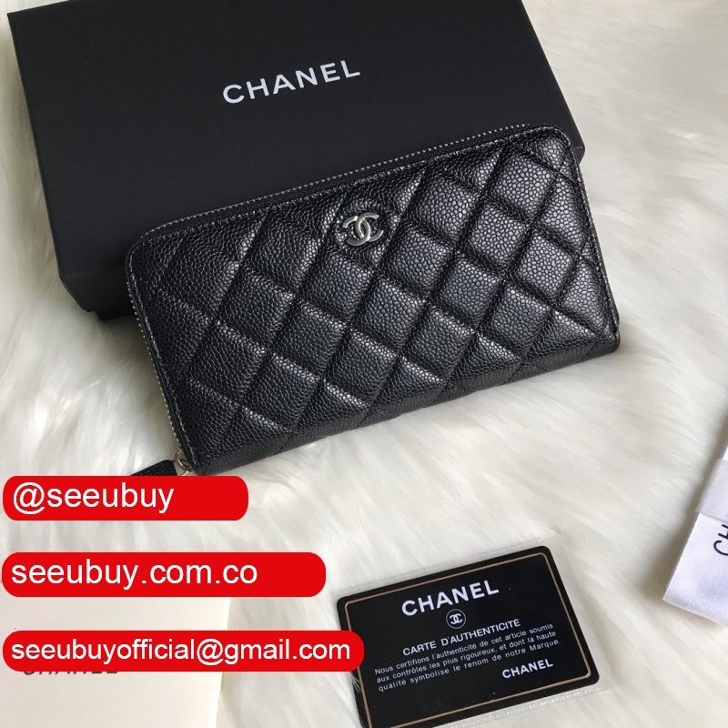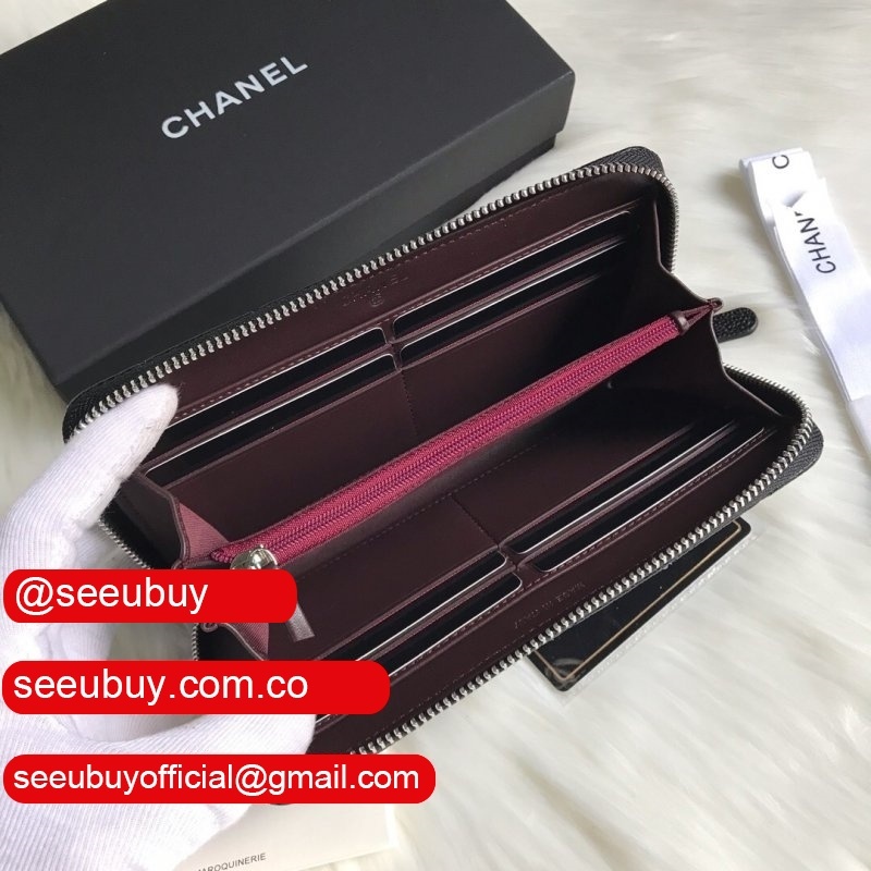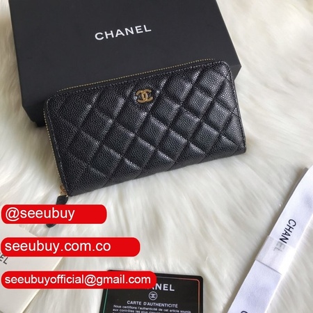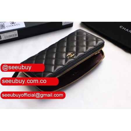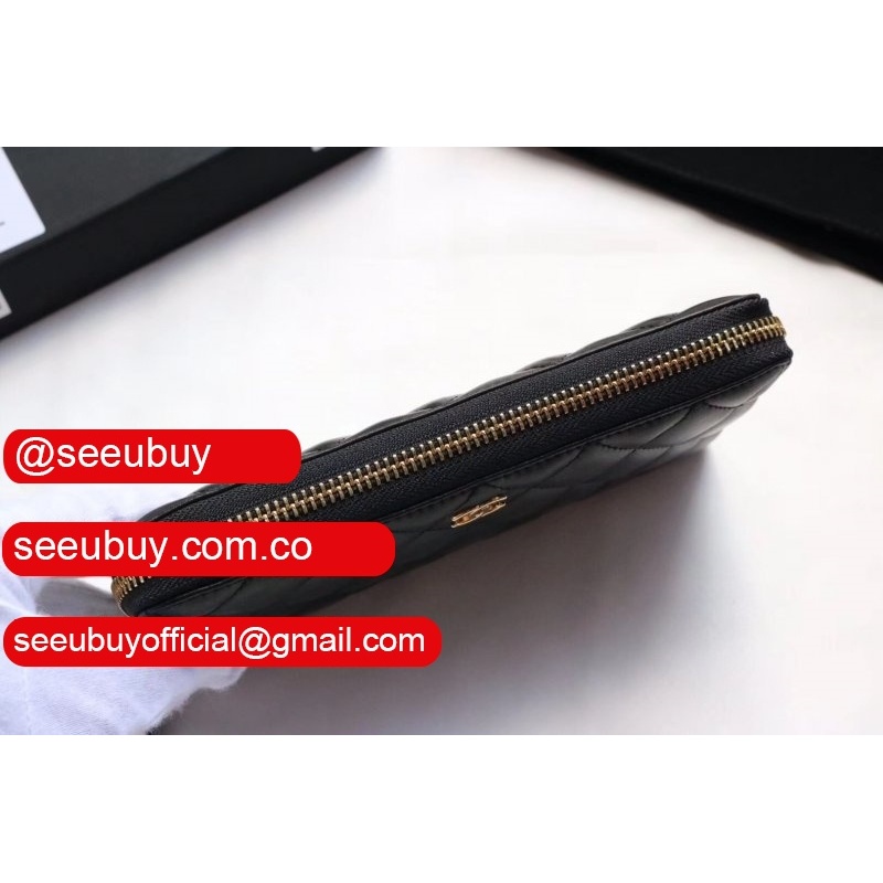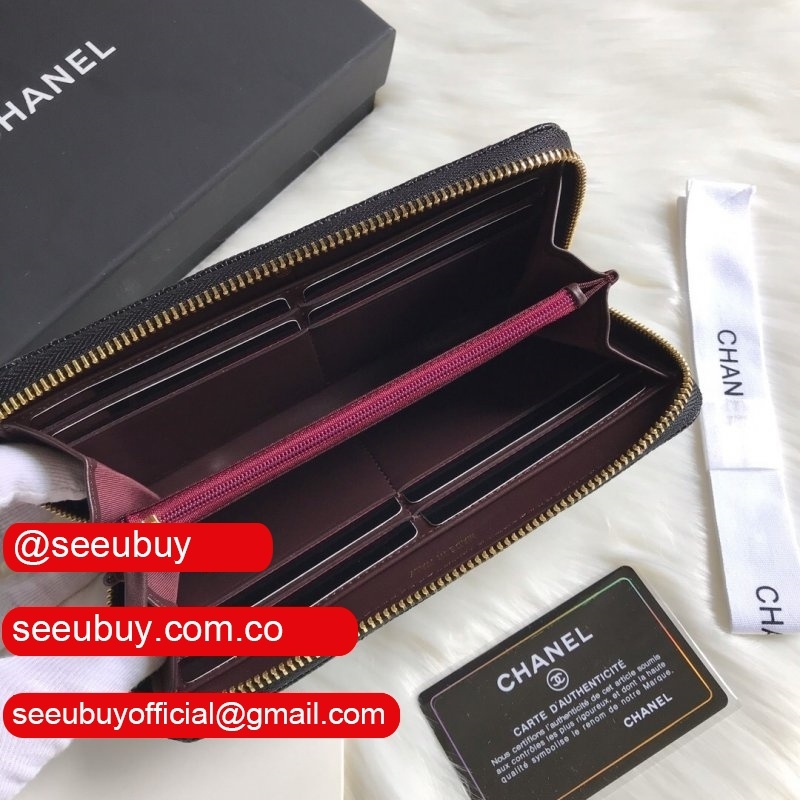 Replica CC Leather Matelasse Round Zipper Long Wallet A50097