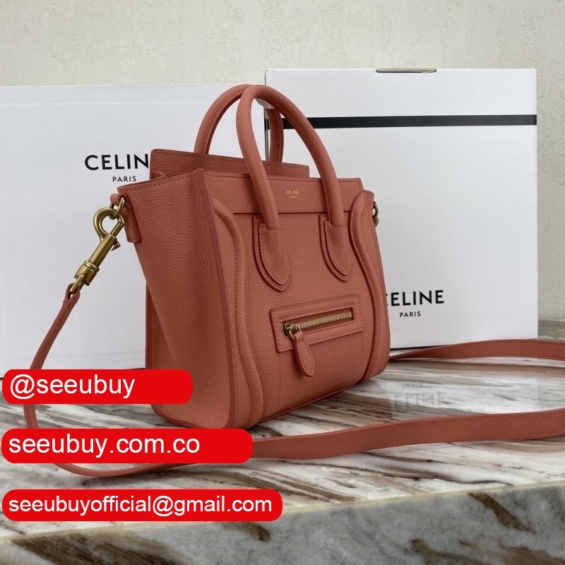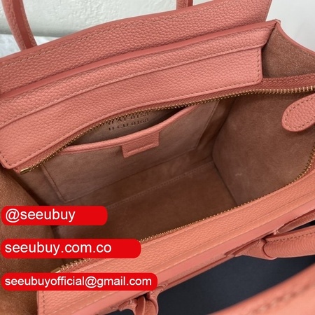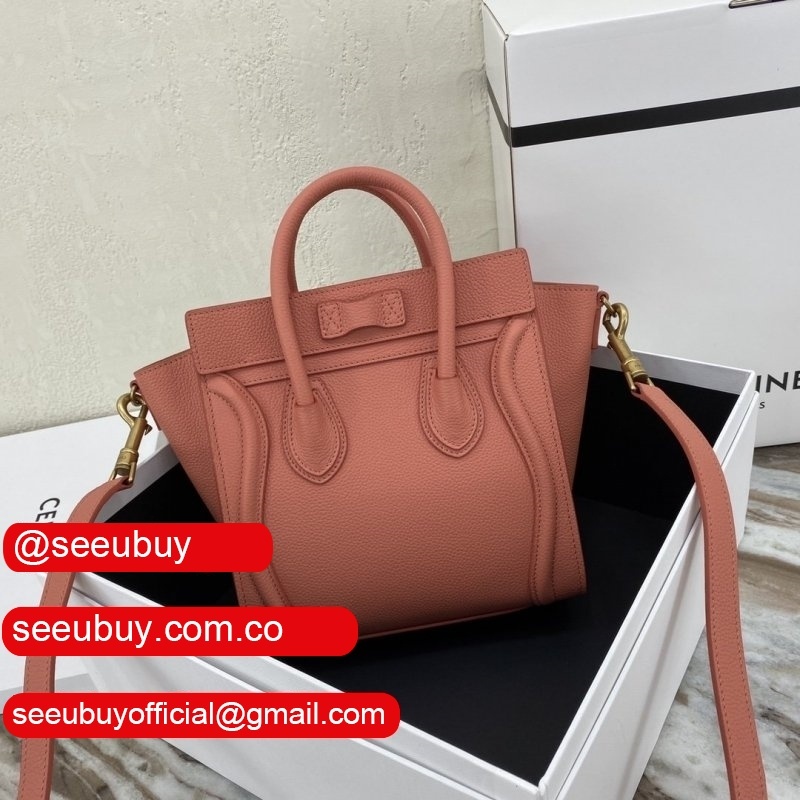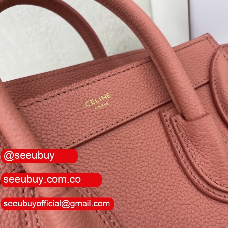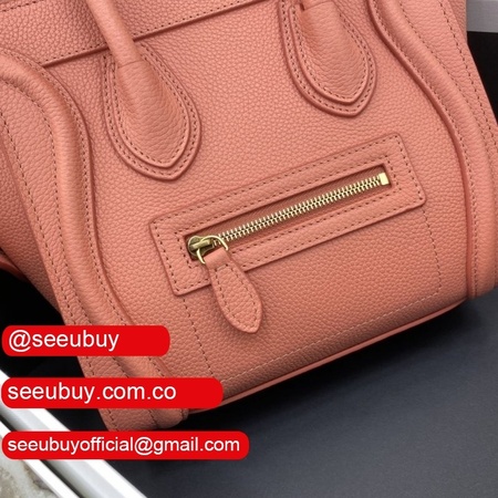 Replica Celine Pink Nano Luggage bag in drummed calfskin
