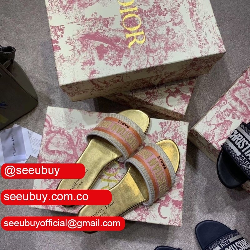 Replica Designer Dior Dway One-word embroidered slippers Shoes Multicolor Online