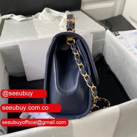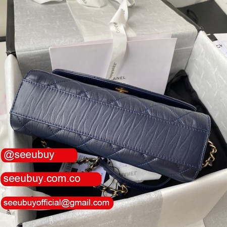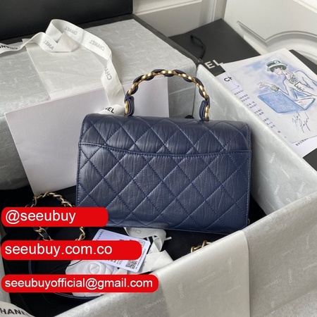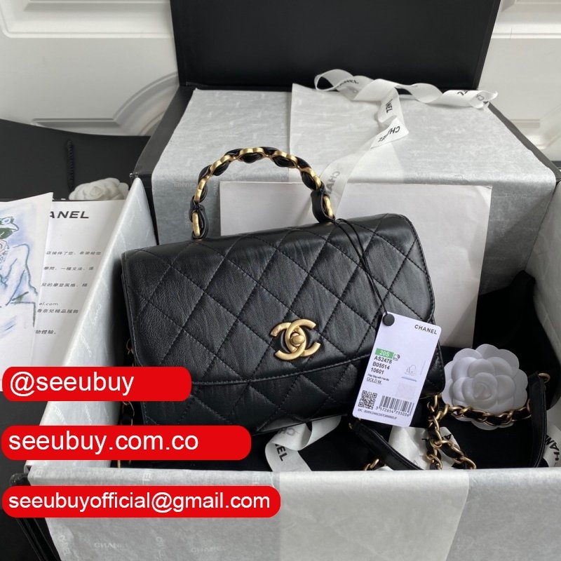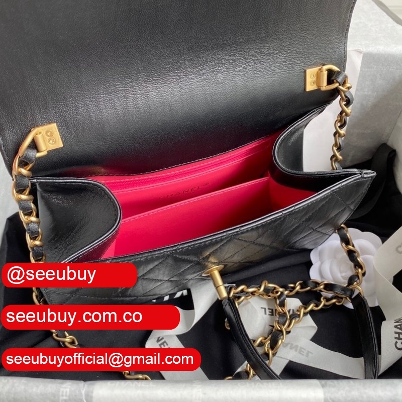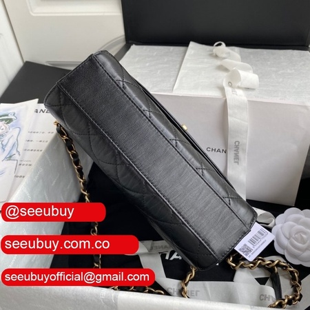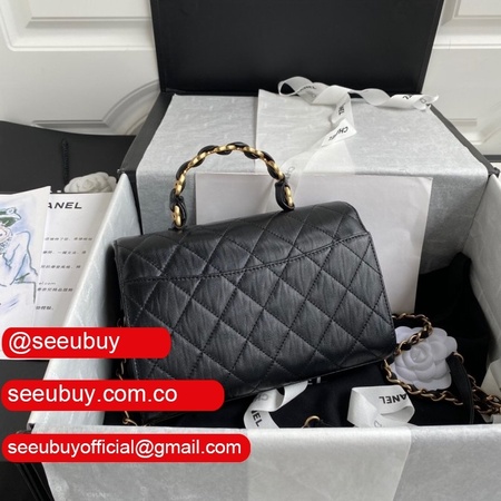 Wholesale AS2431 Grained Calfskin & Gold-Tone Metal Black Mini Flap