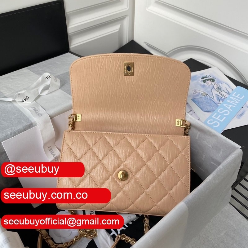 Replica Flap AS2478 Bag Crumpled Lambskin Gold-Tone Metal