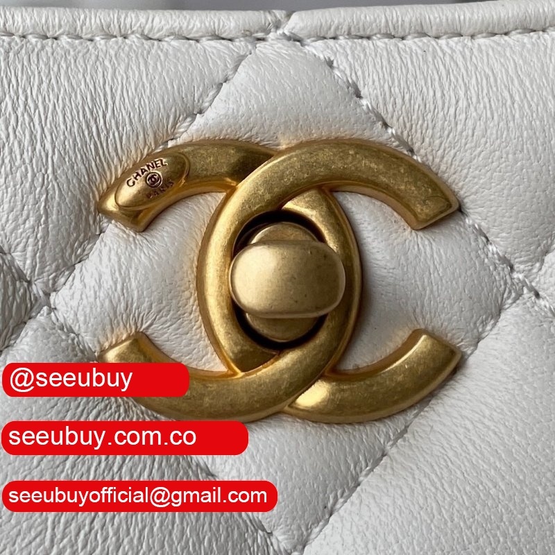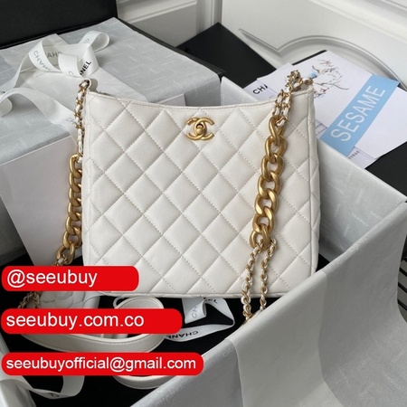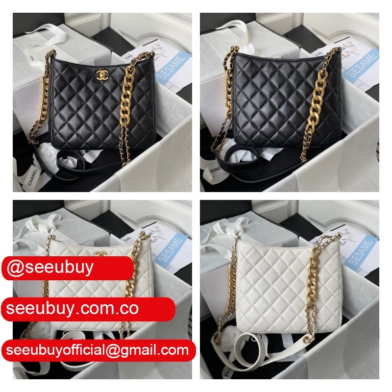 Fashion Hobo Replicas AS2910 Calfskin & Gold-Tone Metal White/Black