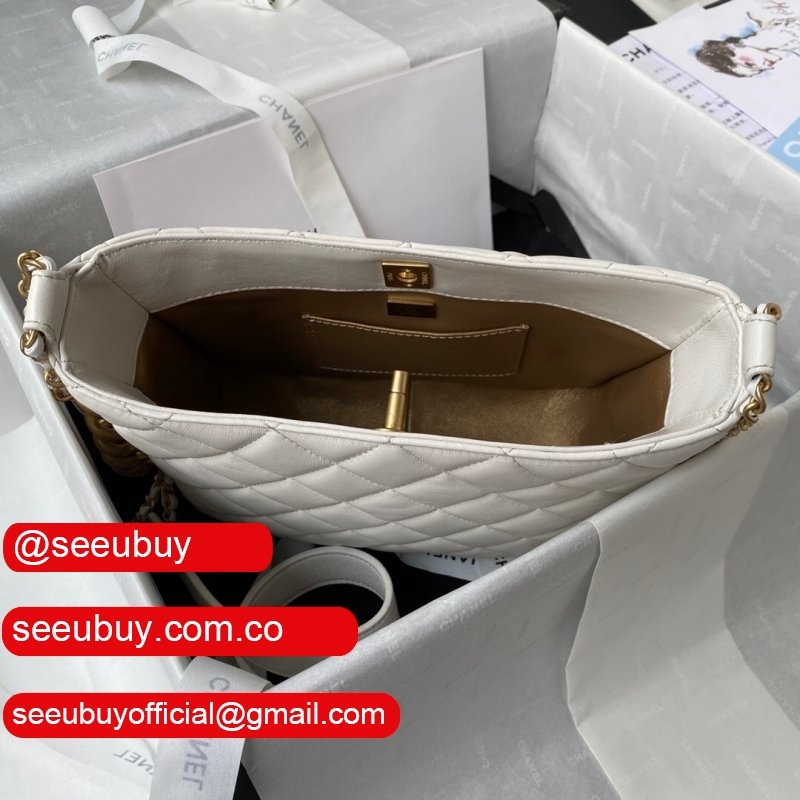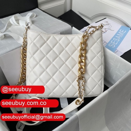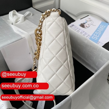 1:1 Replica AS3242 Small Hobo Bag Lambskin White/Black