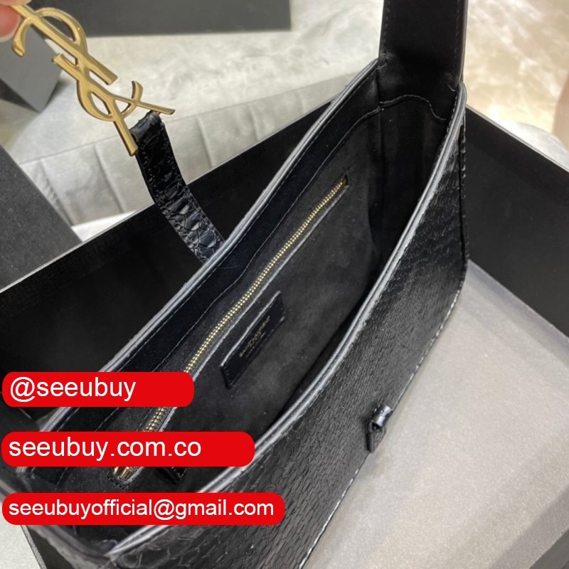 Replica Saint Laurent Shoulder Hobo crocodile-embossed shiny leather Black 657228 Handbags